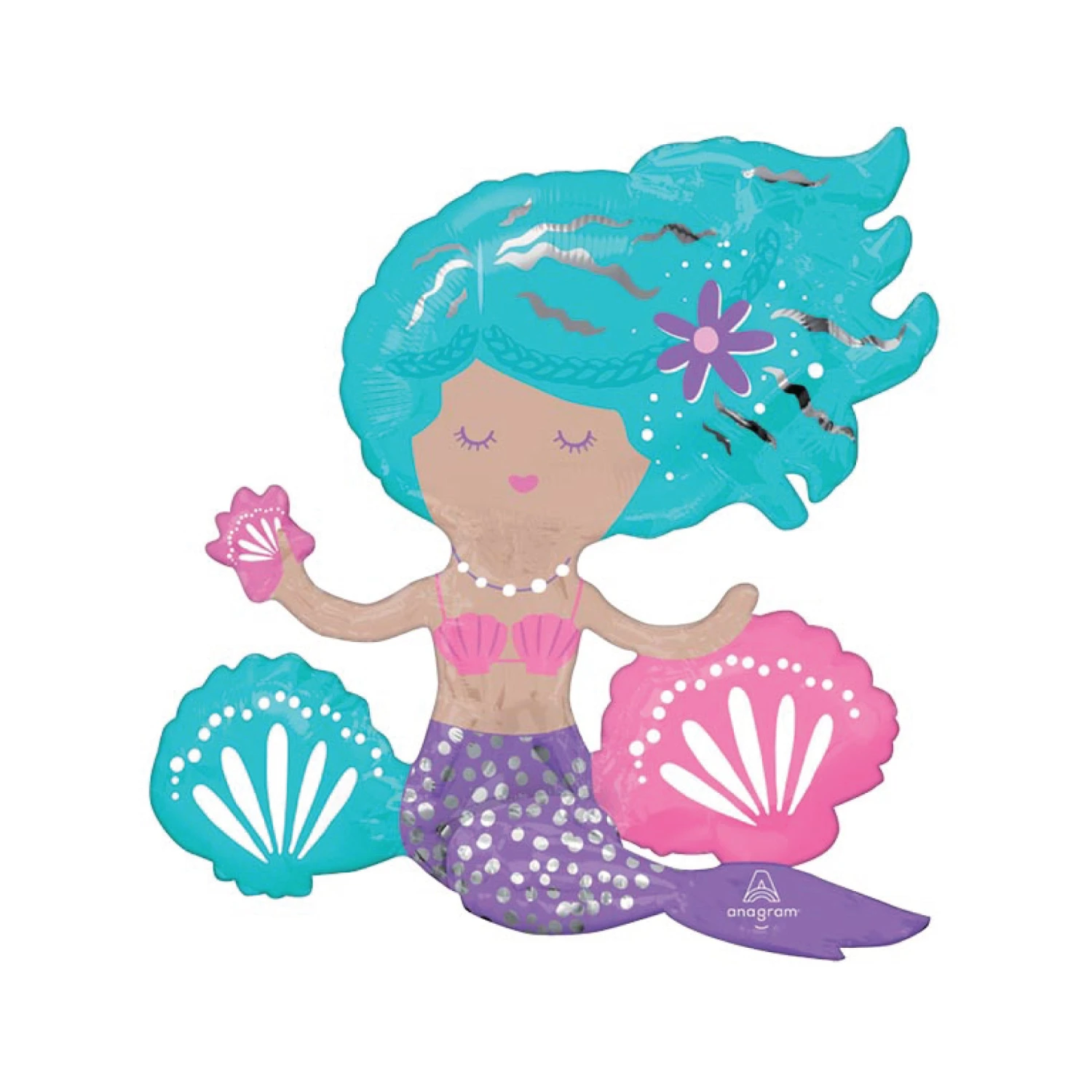 Add a magical touch to your summer pool party with an Air-Filled Sitting Shimmer Mermaid Balloon. This free-standing foil balloon is shaped like a mermaid with blue hair, a purple fin, and seashells all around. Because it doesn’t require helium, the beautiful mermaid balloon makes a perfect centerpiece for your child’s mermaid birthday party. Display this mermaid decoration on the tables at your mermaid baby shower or your little mermaid’s birthday party.