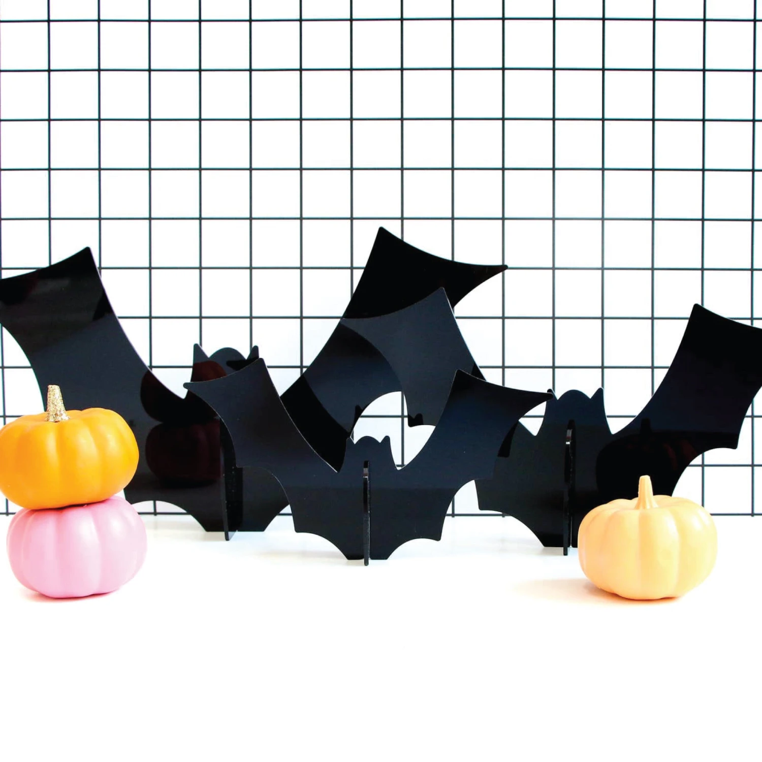Unleash the nocturnal charm this Halloween with these Black Acrylic Bat Decorations! Made from durable black acrylic, these bats come in three different sizes with matching stands. Set these bats on your party table or as a centerpiece to create a spooktacular Halloween decor. Use these bats all season long, or create a spooky cute Halloween backdrop for your little ghouls and goblins to take selfies.