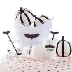 Let your drinks take a flight of fancy with these Black Bat Acrylic Drink Stirrers! These black acrylic stir sticks feature a sleek black bat perched on top of a long, elegant black stem, adding a spooky yet stylish touch to your drinks. Perfect for stirring up your favorite cocktails or witches brew, these swizzle sticks are reusable and easy to hand wash, making them a delightful addition to your Halloween party or hot cocoa bar.