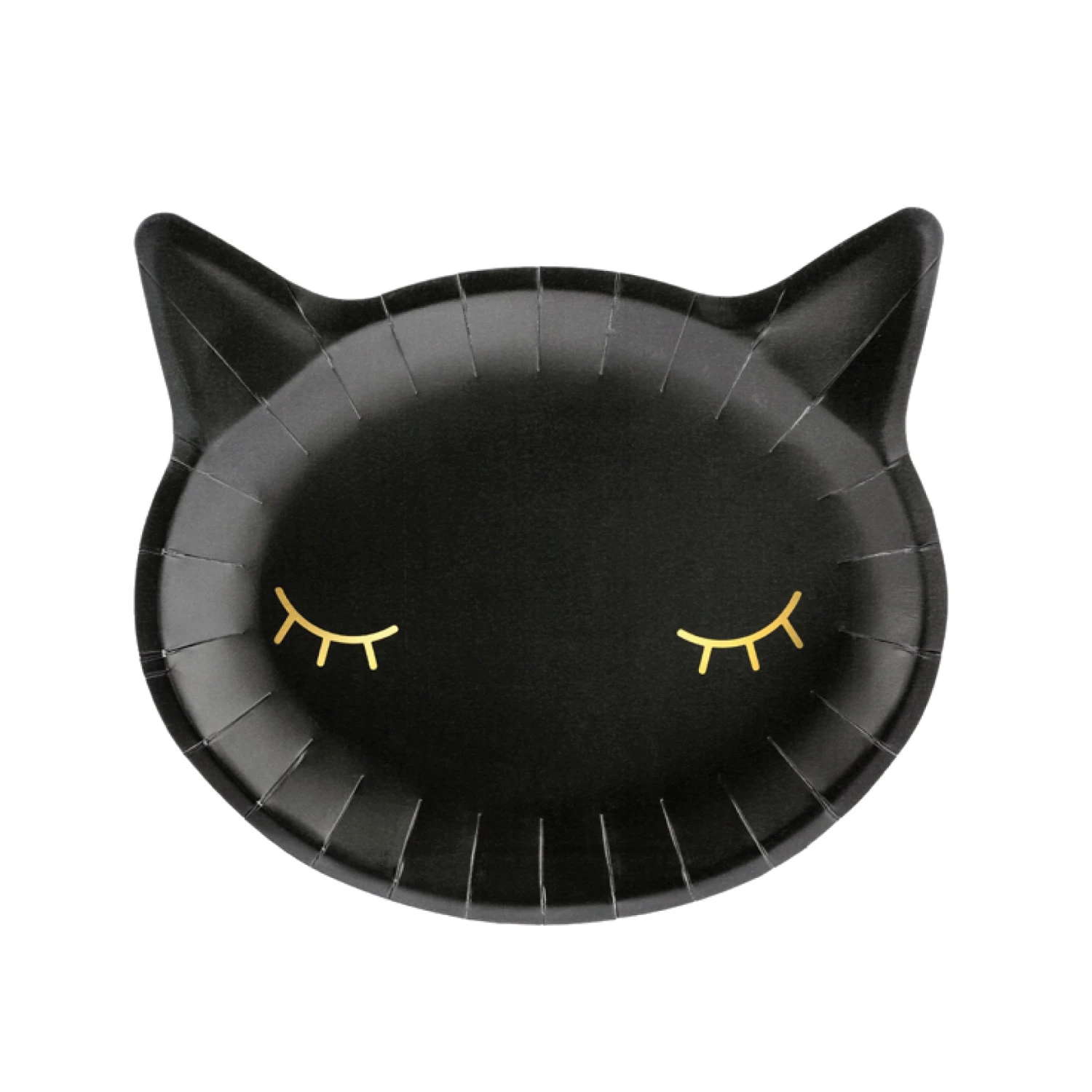 Serve up some purrfect sweets on these Black Cat Lunch Plates! These paper plates are black and shaped like a cat face with metallic gold eyelashes. Perfect for serving desserts or snacks to your little ones. Use cat plates at Halloween party or a cat birthday party.