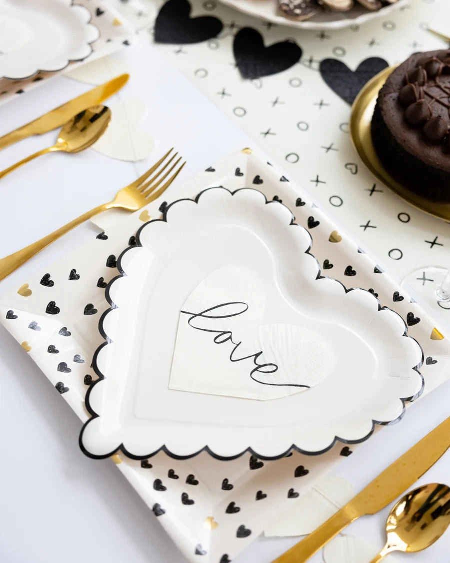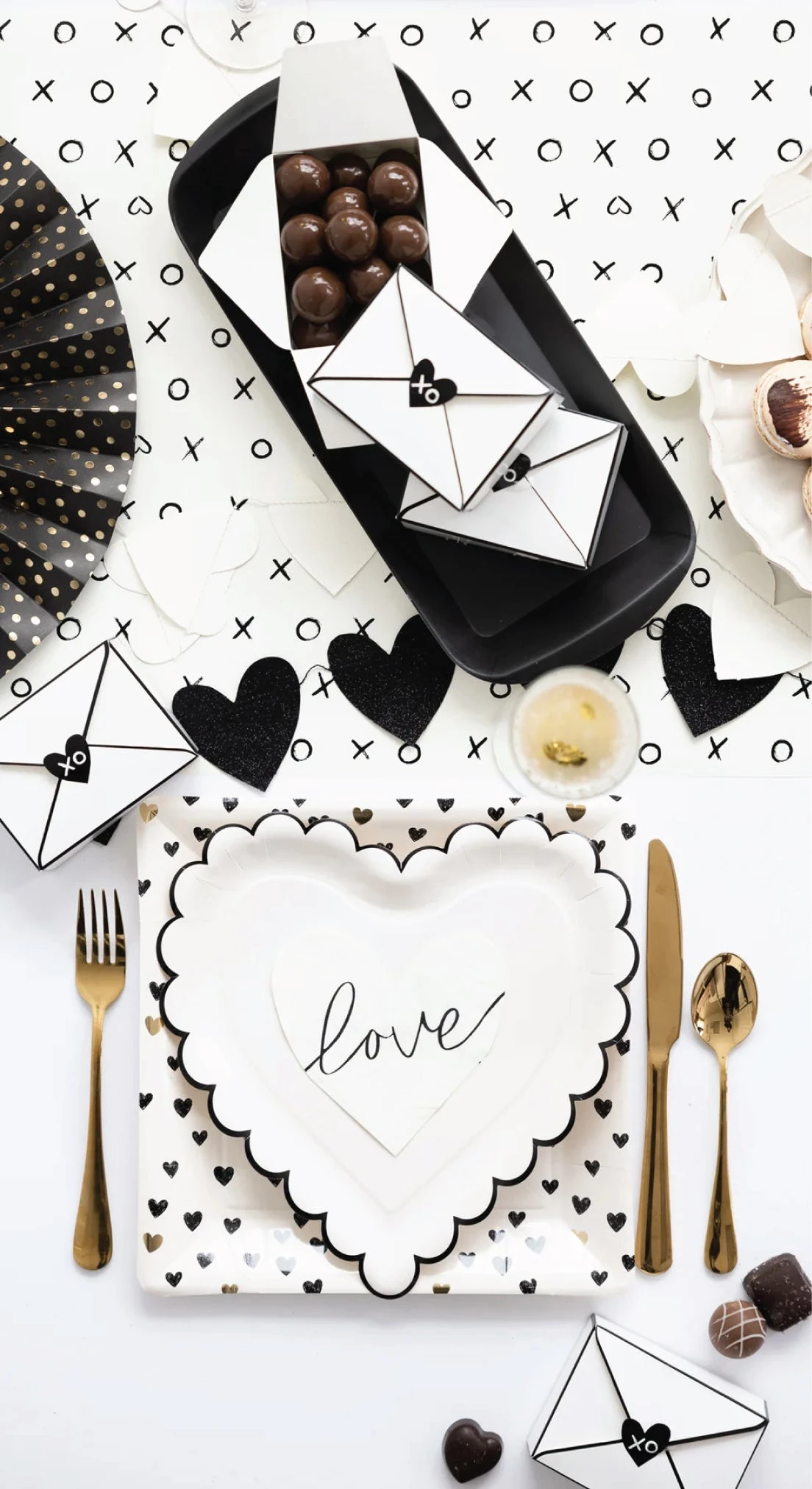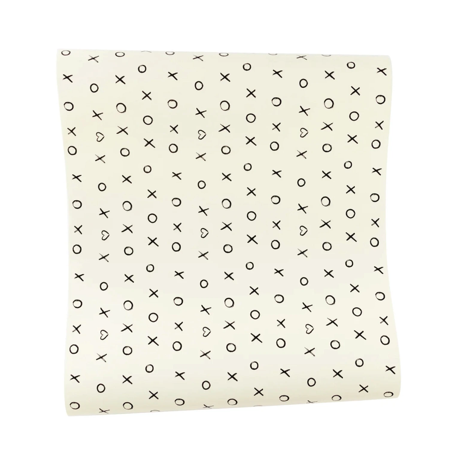 Hearts will flutter when this Black & Cream XOXO Paper Table Runner is displayed! This sleek paper runner is adorned with black Xs, Os, and hearts gracefully printed on a cream background. Long enough for 8ft tables but adaptable to fit any size with a simple snip, lay this Valentine’s table runner down the center of your table to set the stage for a celebration filled with love and laughter. Whether it’s a romantic dinner for two on Valentine’s Day, a lively Galentine’s Day party with friends, or a Valentine’s birthday in February, this table runner is versatile enough to suit any love affair.