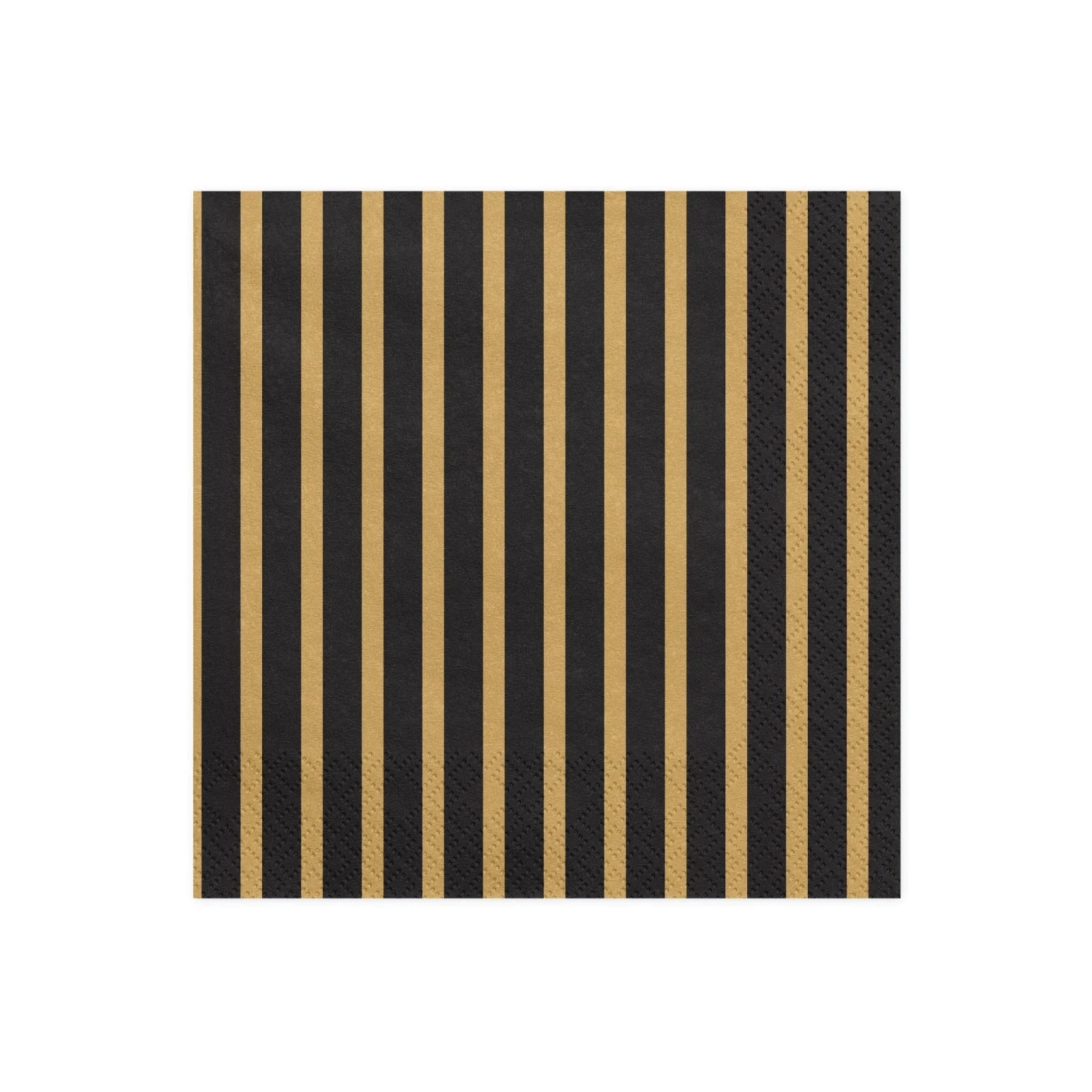 Celebrate in style with these elegant Black & Gold Stripe Lunch Napkins that are perfect for a New Year’s celebration, milestone birthday, anniversary, or any other classy celebration.