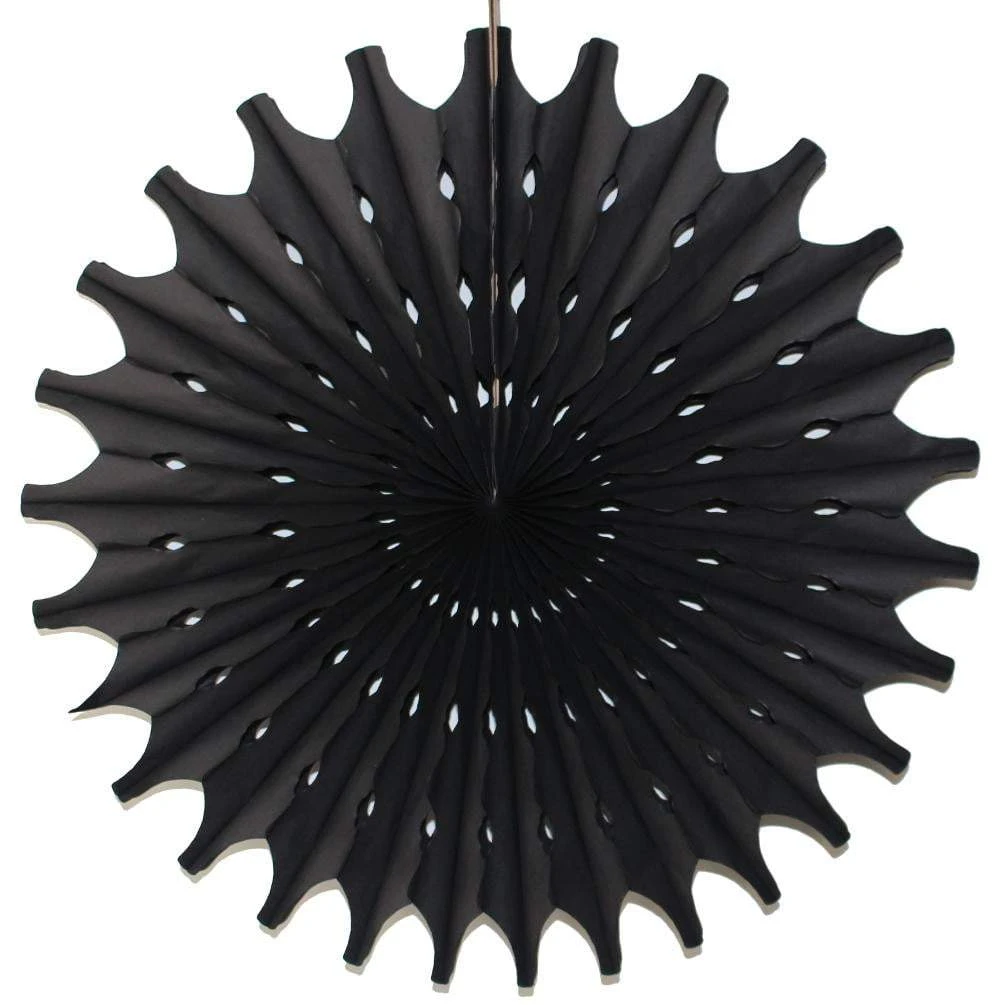 Beautiful Black Tissue Paper Fan made from premium tissue paper. This high quality fan is perfect for New Year’s Eve, graduations, weddings, birthdays, supermarket displays, and other celebrations. Each fan comes with an attached hanging string for ease of use. Hang these fans from the ceiling or create a fabulous photo or buffet table backdrop along the wall.