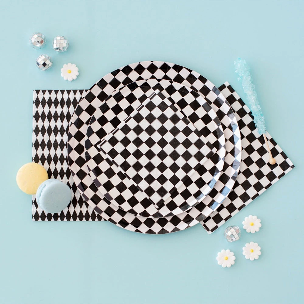 Add a classic touch to your party with these Black & White Checkered Lunch Napkins, sure to make your party checklist! The two-tone checkered pattern napkins in black and white are perfect for a race car party, Mad Hatter, or Halloween-themed party. Mix and match with your favorite party pieces or use them as stand-alone items.