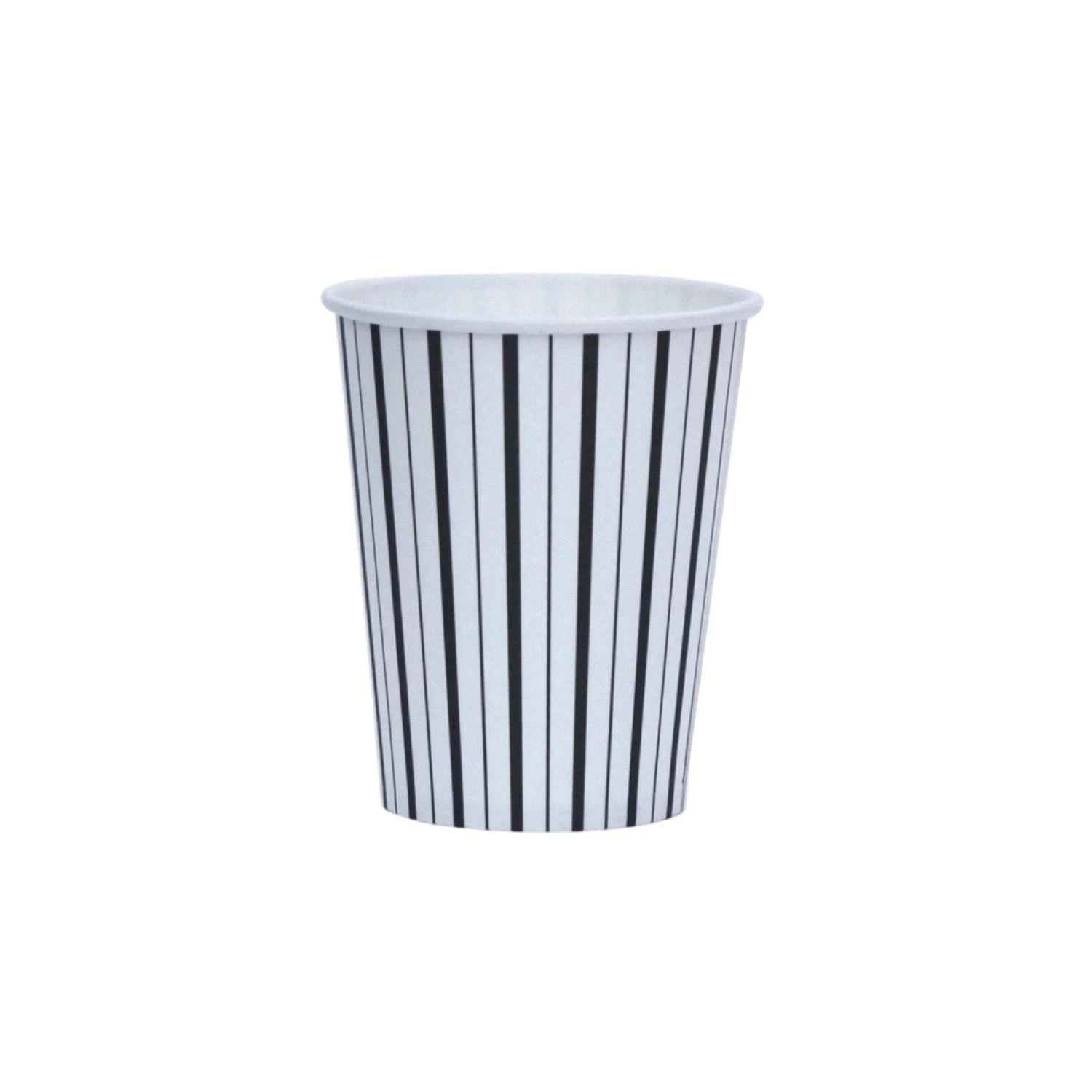 Raise a toast to good friends and family using these Black and White Fine Stripes Paper Cups! These paper cups feature fine black stripes on a white background. You can use these cups to serve hot or cold drinks— so use them for punch, juice, hot cocoa, and more. Their simple black and white color easily coordinate with any party theme for a Halloween party, graduation, or birthday party. And, when you’re done, you can toss these black cups in the trash for easy cleanup.