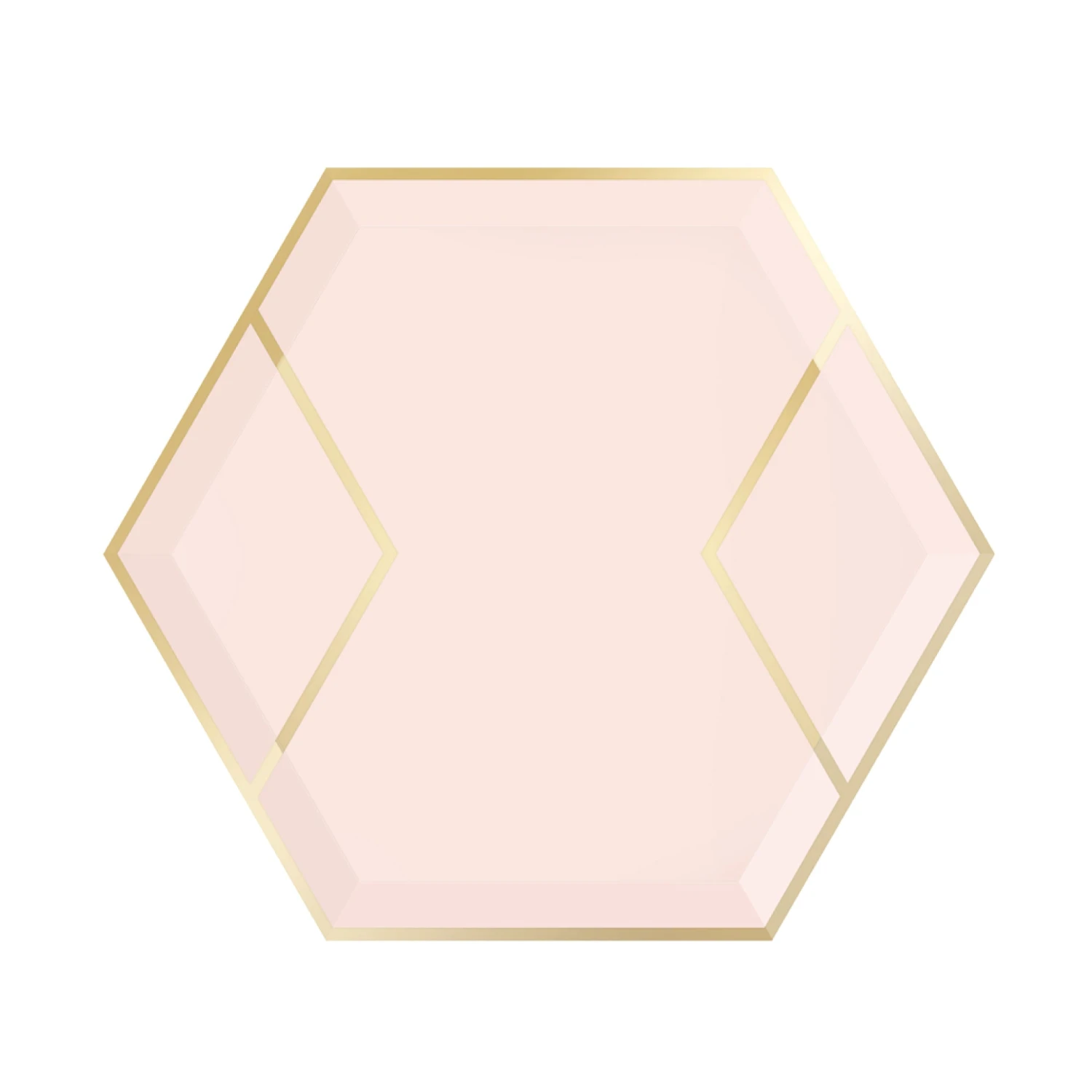 Add an elegant touch to your party with these beautiful Blush Pink & Gold Hexagon Dessert Plates! These hexagonal-shaped plates feature a blush pink background with soft gold foil accents and a gold metallic border. Serve light bites and desserts on these disposable paper plates, then toss them when you’re done for easy cleanup. Use these party plates for birthdays, anniversary dinners, bridal showers, engagement parties, or Valentine’s Day!