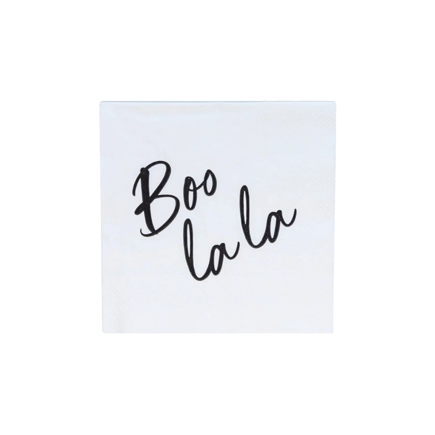 Get into the Halloween spirit with these Boo La La Dessert Napkins! These small paper napkins feature a black cursive “boo la la” headline on a white background, adding a chic touch of spooky elegance. Perfect for wiping up crumbs or serving with your favorite beverages, these cocktail napkins are a must-have for your spooktacular Halloween party.