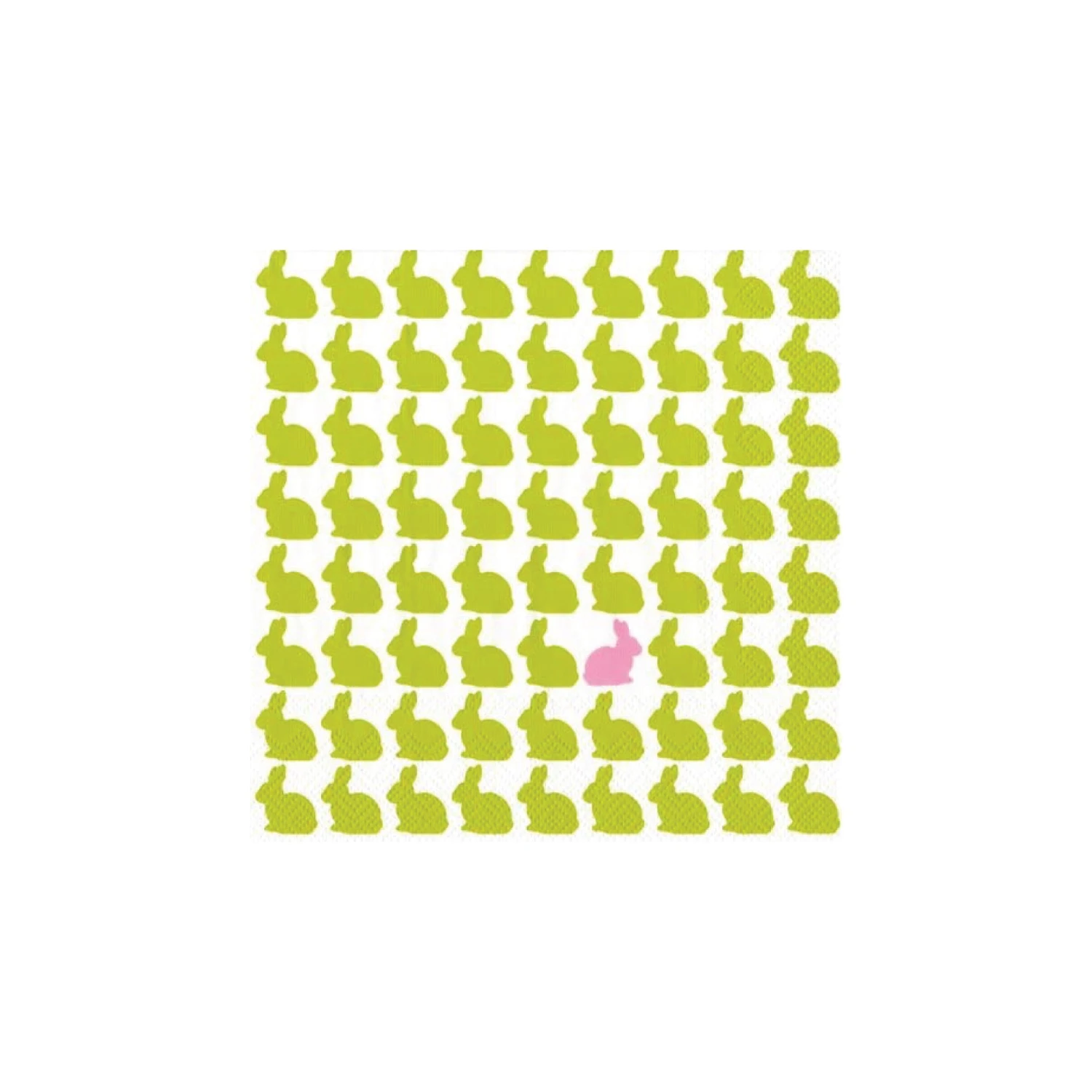 Add a fabulous look to your Easter or springtime party table with these delightful Bunny Parade Dessert Napkins. These paper napkins feature green bunnies and one pink bunny on a white background. The backside has pink bunnies and one pink bunny on a white background. Use these disposable paper napkins to clean up messes or set a stack of them at the drink table so guests can grab one with their beverage. Add a hop of fun to a bunny baby shower or Easter party with these small paper napkins!
