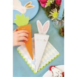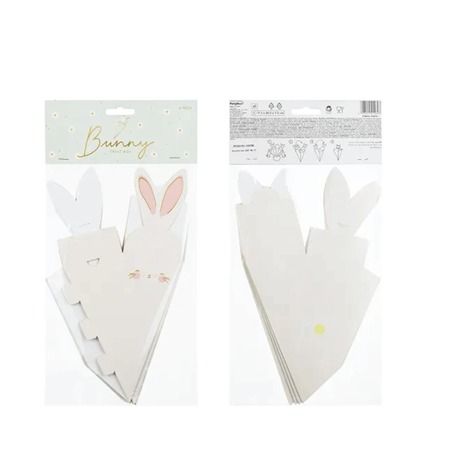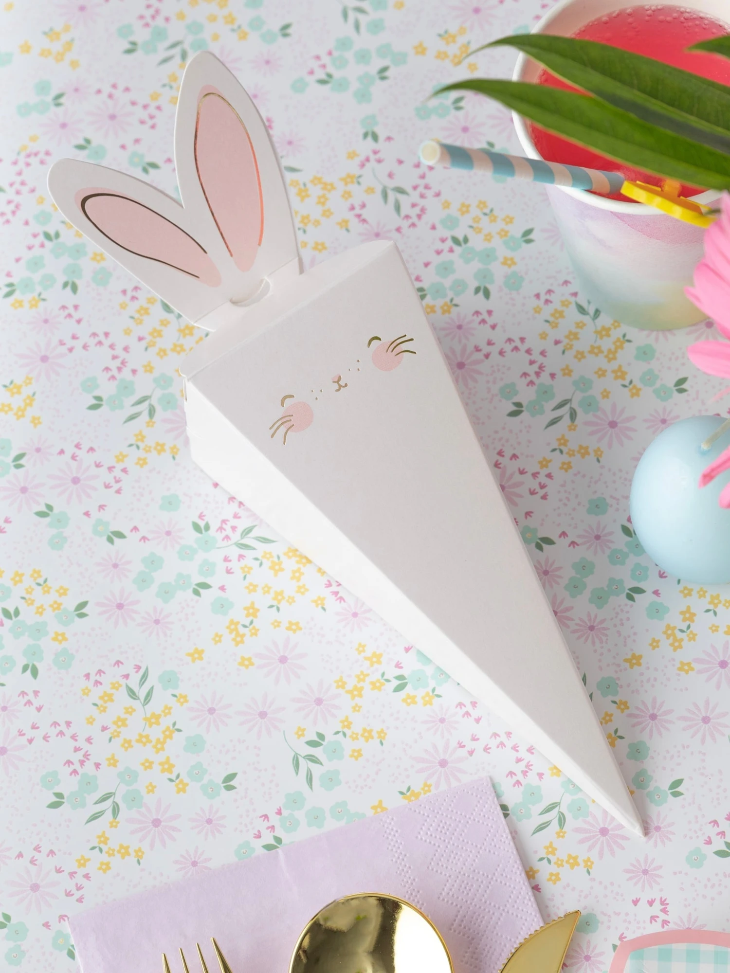 Send your baby shower guests home with party favors in these cute Bunny Treat Boxes! These paper boxes are shaped like a bunny with pink and gold ears, gold accents for the whiskers, and a pink nose. Place these adorable bunny favor boxes on your party table or at the front door for guests to take as they leave the birthday, baby shower, or Easter celebration. The boxes are perfect for a Little Bunny is on the Way baby shower, or Some Bunny is One-themed birthday party.