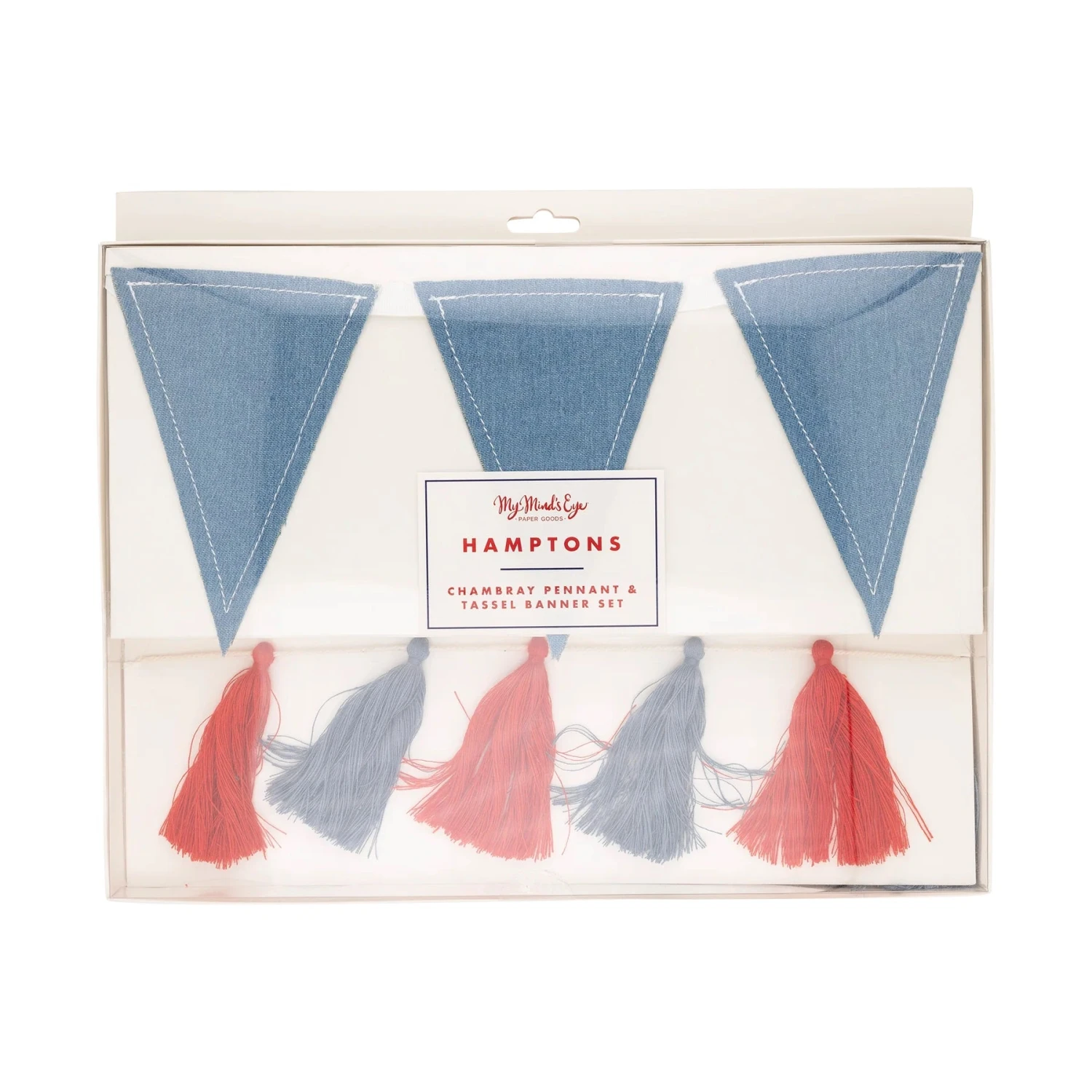 - Tassel banner includes 23 red and blue tassels