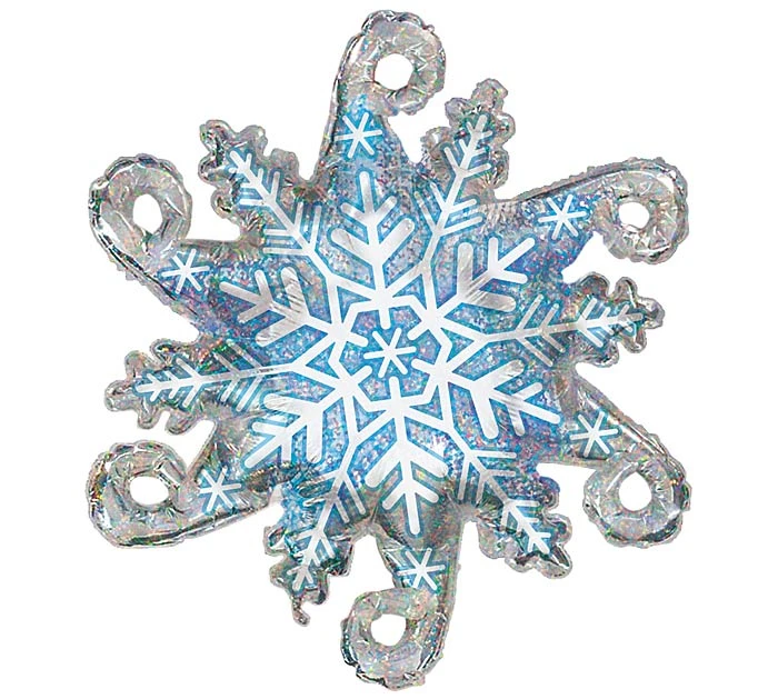 Celebrate wintertime with this Christmas Linky Snowflake Balloon. This snowflake balloon features a silver snowflake-shaped balloon with blue and white details. Use this winter holiday balloon as a single party decoration for a Winter Wonderland birthday party or in a balloon bouquet for Christmas!