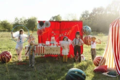 Join the big top with our Circus Party Paper Fans! This pack includes five unique fan designs, featuring a mix of red, blue, and teal stripes, along with solid red and teal fans accented with dazzling gold stars for a bold, festive look. These fans are a must-have for your circus-inspired party, adding a pop of fun to your photo backdrops or party wall decorations. So grab some cotton candy and clown around with these lively round fans at your circus-themed birthday party or carnival baby shower!
