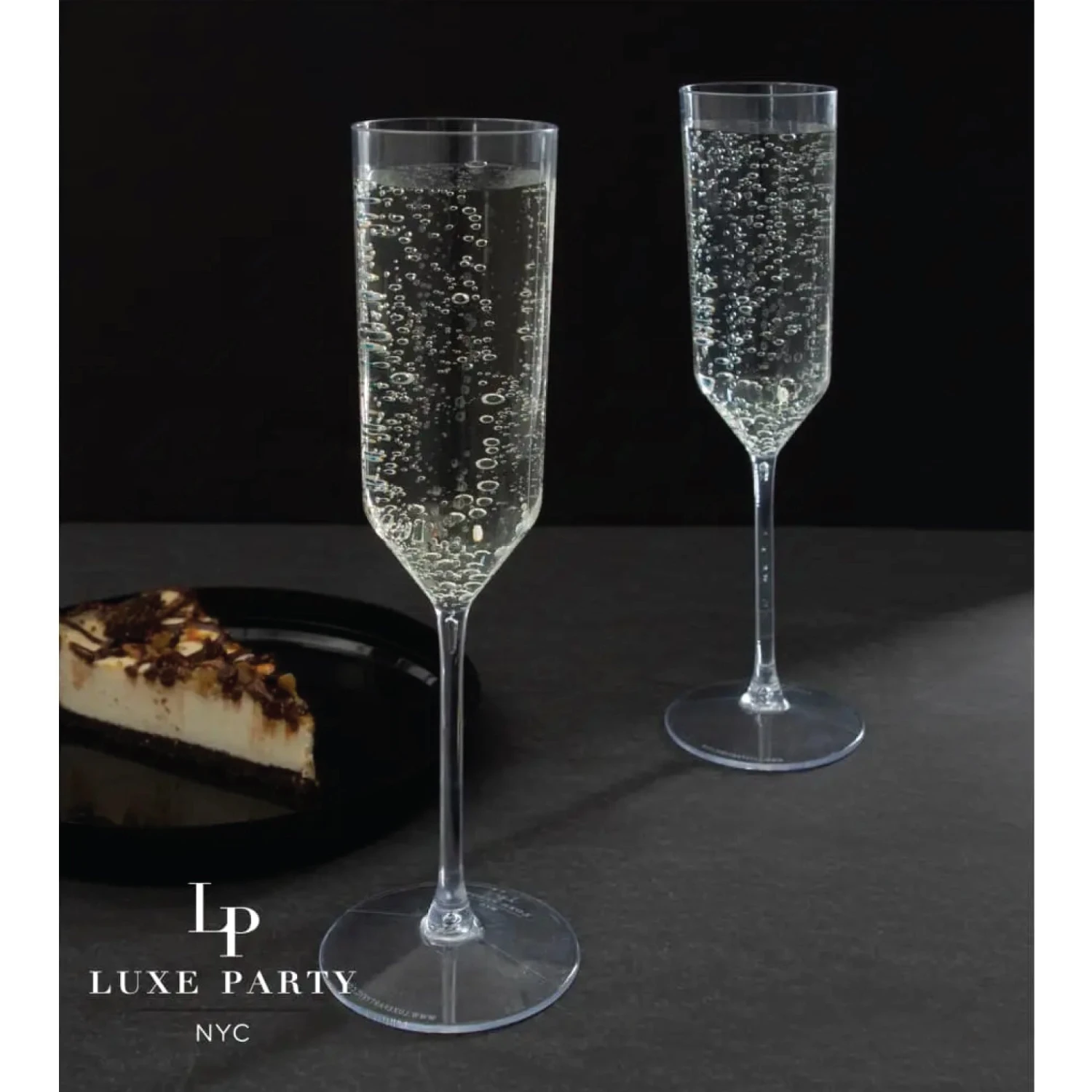 Pop the bubbly and raise a toast with these Clear Plastic Champagne Flutes. Crafted from durable, high-quality plastic, these sleek flutes mimic the elegance of traditional glassware with their slender stems and crystal-clear design. Their sturdy construction ensures worry-free handling while allowing guests to enjoy every sip without the fear of breakage. Whether you’re making a toast to the newlyweds at their wedding, enjoying a beverage at a holiday party, showering the mom-to-be at the baby shower, or counting down to midnight at a New Year’s Eve party, these reusable cups offer the ideal balance between style and convenience. So fill them with your favorite bubbly or sparkling beverage, and cheers to making lasting memories in utmost style.
