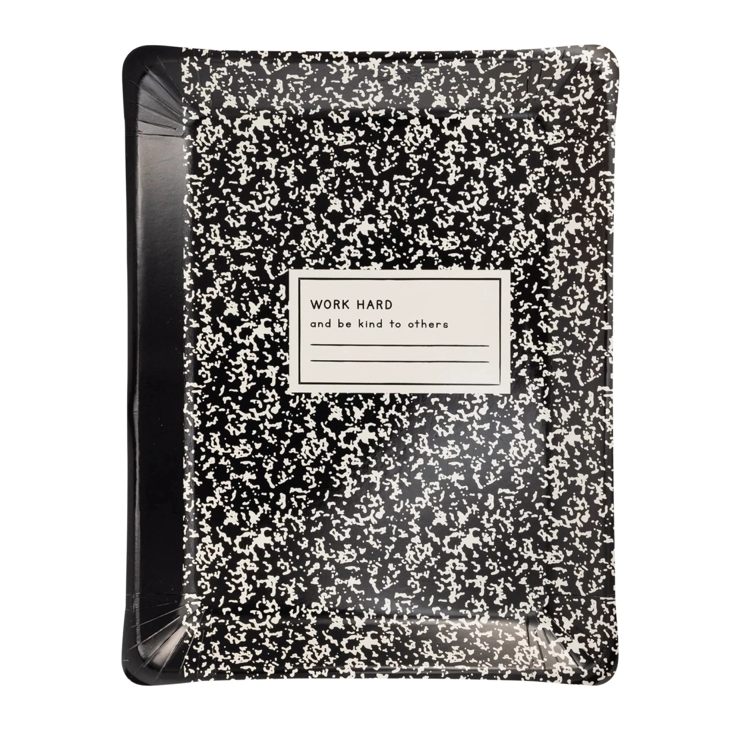 Gear up for the first day of school and take note with these Composition Notebook Lunch Plates! These paper plates look like a classic black and white composition notebook with a “work hard and be kind to others” headline. Use them to serve snacks, appetizers, or pizza to your little scholars and their classmates. Whether it’s a first or last day of school party, a teacher appreciation day, or a creative preschool birthday bash, these school plates will add a playful touch to the classroom. Plus, they can easily be disposed of after use, ensuring a hassle-free cleanup. Make your classroom party a memorable one with these notebook plates!