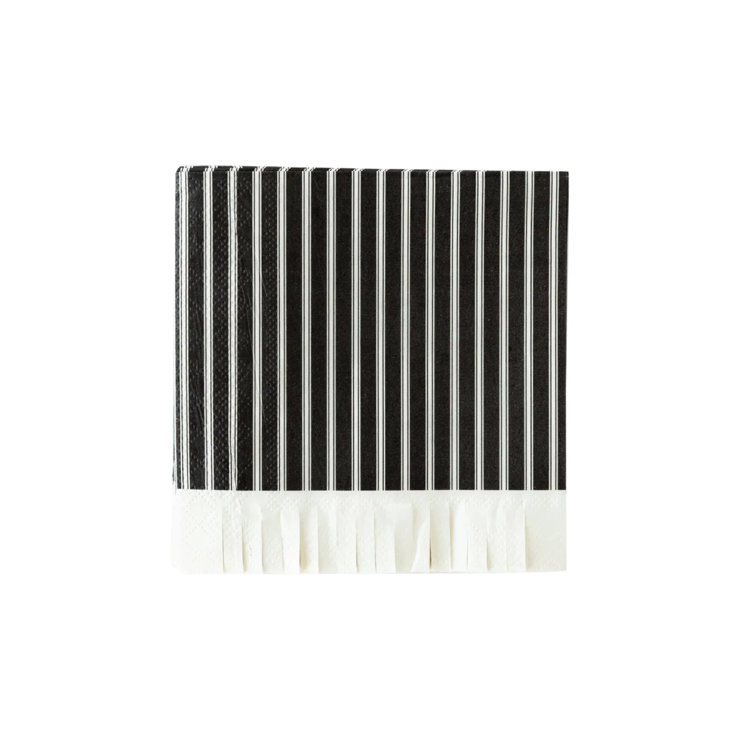 Add a classic style to your next party by including these Cream & Black Striped Fringe Dessert Napkins on the table. These small paper napkins have black and cream stripes with cream paper fringe on one edge. From your kid’s Halloween party to graduation celebrations, these striped napkins will make a fa-boo-lous statement. Keep a stack of napkins by the bar to hand out with drinks at birthdays, holidays, baby showers, and more.