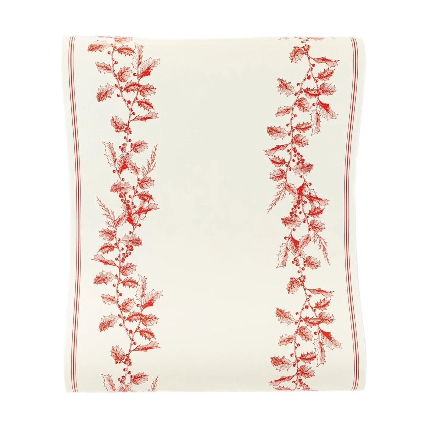 Transform your holiday table with this Cream & Red Holly Paper Table Runner. This timeless vintage-inspired Christmas runner features a red holly trim on a cream background. Make new memories with this classic Christmas design that is sure to set the perfect backdrop to your merry tablescape.