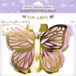 Create an eye-catching backdrop for their butterfly birthday party with a Gold Happy Birthday Butterfly Banner! The party banner has gold letters that read “Happy Birthday” in a charming script font with 3D butterfly cutouts on each end. This butterfly birthday decoration is an easy way to bring your child’s butterfly birthday party to the next level, and it can even be used as a photo booth backdrop! Display this butterfly birthday garland on a wall, buffet, or mantel to complete your child’s fairy garden birthday party.