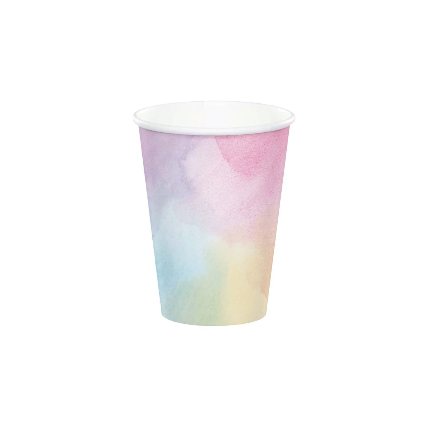 Add some color to your tablescape with Rainbow Watercolor Paper Cups! This pack of party cups features an iridescent pink coat that shines like a palette of rainbow watercolors. Set these cups out so guests can enjoy their favorite drink at your child’s unicorn birthday party. Use these cups to cheers at your rainbow baby shower, bridal shower party, or any party that could use some shimmer!