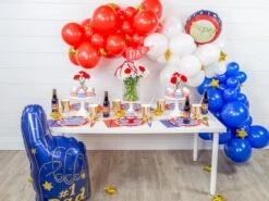 Celebrate the remarkable man of the house on Father’s Day with this Dad Pennant Flag! This pennant flag features a red watercolor flag with a white “Dad” headline attached to a wooden dowel with strands of colorful ribbon and sparkle. Use this fun party flag as a prop in your photo booth or as a Father’s Day cake topper to display as part of a centerpiece decoration.