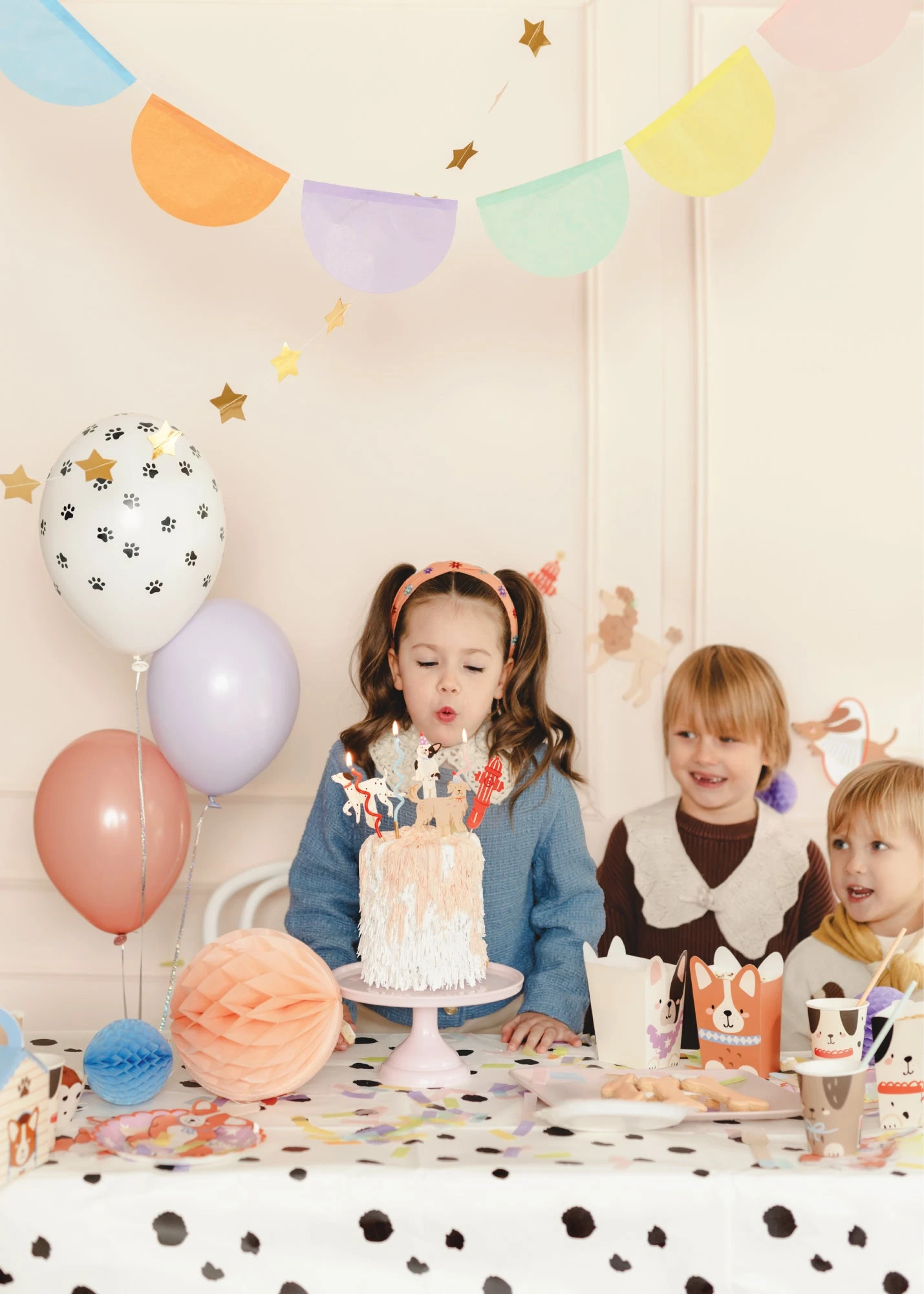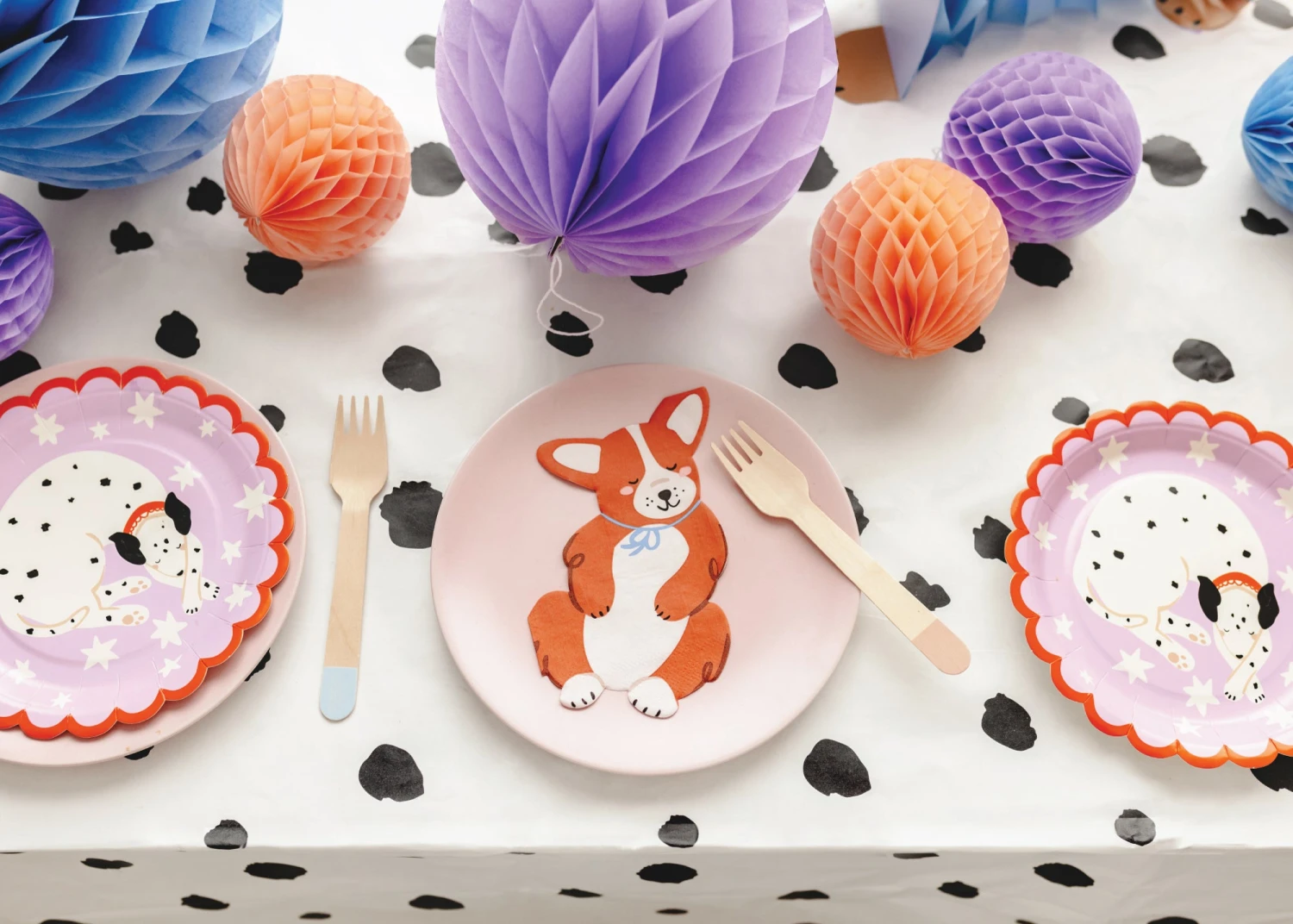 Spot the fun with this Dalmatian Paper Table Cover! This adorable tablecloth is white with black spots, just like a Dalmatian’s coat. It’s perfect for protecting your tables from spills while setting the scene for your dog party tablescape. Use it for a little pup’s pawty birthday, a Dalmatian party, a firefighter bash, or an adopt-a-puppy celebration to create a display that’s paw-sitively perfect!