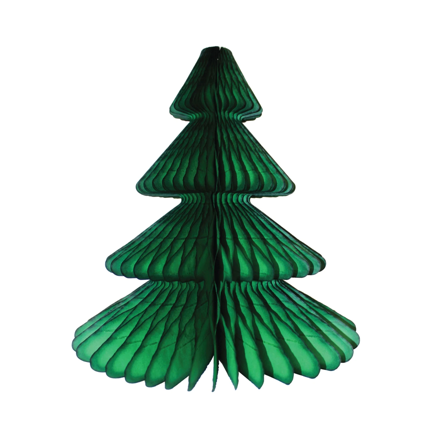 Create a beautiful tabletop display with a Dark Green Christmas Tree Honeycomb Paper Centerpiece. This Christmas tree-shaped centerpiece is made of honeycomb tissue paper. You’ll be able to create a winter wonderland in seconds using the adhesive closure. From the Christmas mantle to your tablescape, this honeycomb tree will add an extra touch of merry to any space this holiday season. Pair with other sizes and colored honeycomb trees to match your Christmas party theme. Use this Christmas shelf sitter year after year to decorate your home for the holidays.