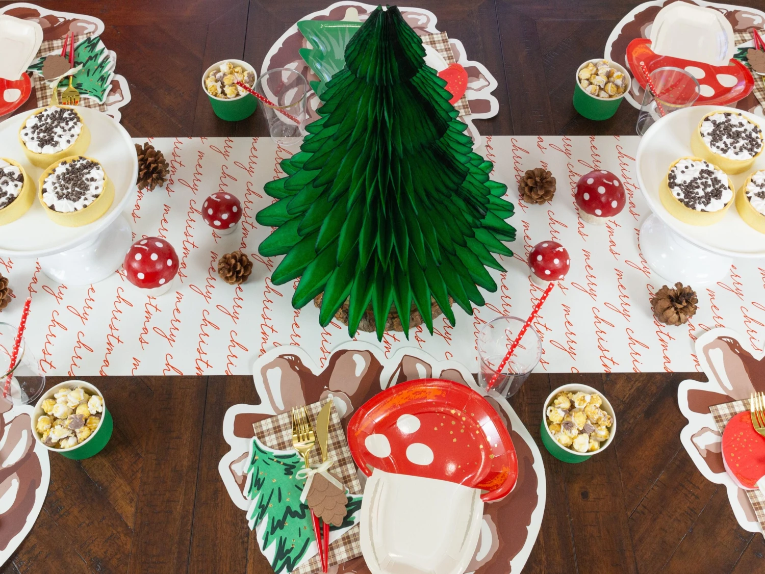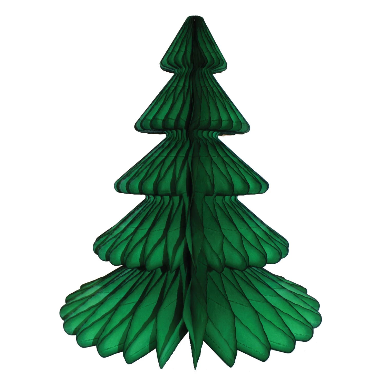 Create a beautiful tabletop display with a large Dark Green Christmas Tree Honeycomb Paper Centerpiece. This Christmas tree-shaped centerpiece is made of honeycomb tissue paper. You’ll be able to create a winter wonderland in seconds using the adhesive closure. From the Christmas mantle to your tablescape, this honeycomb tree will add an extra touch of merry to any space this holiday season. Pair with other sizes and colored honeycomb trees to match your Christmas party theme. Use this Christmas shelf sitter year after year to decorate your home for the holidays.