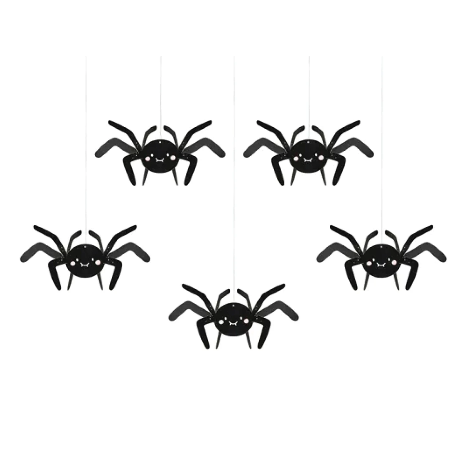 DIY Paper Spider Hanging Decorations will add a spooky touch to your Halloween décor. These black spiders feature rosy cheeks, white eyes and mouths, eight legs, and a silver string for effortless hanging. Assemble the cardstock cutouts to create an eye-catching 3D spider effect. You can hang them from the ceiling or use them as a photo booth backdrop at your child’s Halloween birthday party. Whether you’re hosting a spooky cute Halloween party or just looking to add some festive flair to your home, these hanging spiders will surely be a fun addition to your Halloween decor.