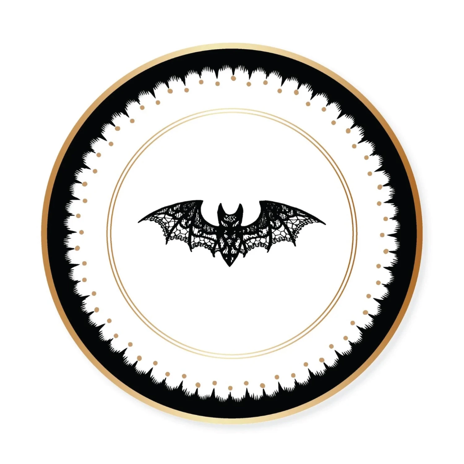 Go batty for your sweet treats at your Halloween party with these Elegant Halloween Dessert Plates! These small paper plates feature an intricate bat design with luxurious gold foil elements that elevate them to a new level of spooky elegance. Perfect for serving spooky snacks, devilish desserts, and creepy canapes, these disposable plates make clean-up a breeze. Ideal for a spooktacular birthday party or any Halloween gathering, these plates are guaranteed to impress both kids and adults with their refined and eerie aesthetic.