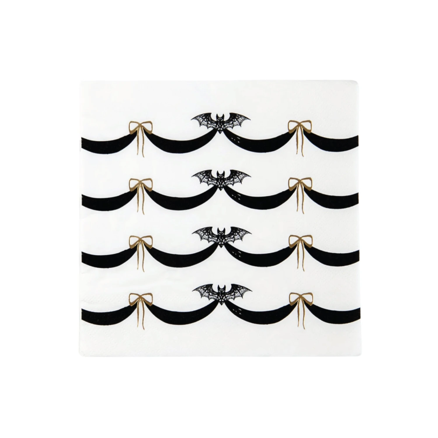 Turn your Halloween party into an upscale affair with these Elegant Halloween Lunch Napkins! These paper napkins feature a pattern of delicate lacy bats with black drapes and gold foil ribbons on a pristine white background. Perfect for keeping your hands clean and wiping away crumbs, these Halloween napkins are designed to impress both kids and adults with their refined yet eerie design. Whether you’re hosting a costume party or a chic Halloween soirée with your ghoul friends, these napkins will surely add a touch of class to your spooktacular celebration!