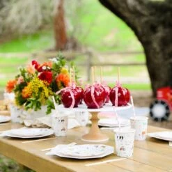 Grab your overalls and get ready for a farm-tastic time when you use these Farm Animals Small Plates. Featuring bold colors, silver foil-pressed elements, and all sorts of fun farm animals and equipment. These plates are just the right size for cake, brownies and other sweet treats. Add them to your birthday party supplies along with our Farm Animals Napkins & Cups! Mix a few pieces of Solid Color Party Decorations in with these Farm Animals tableware and you and your guests will be partying until the cows come home!