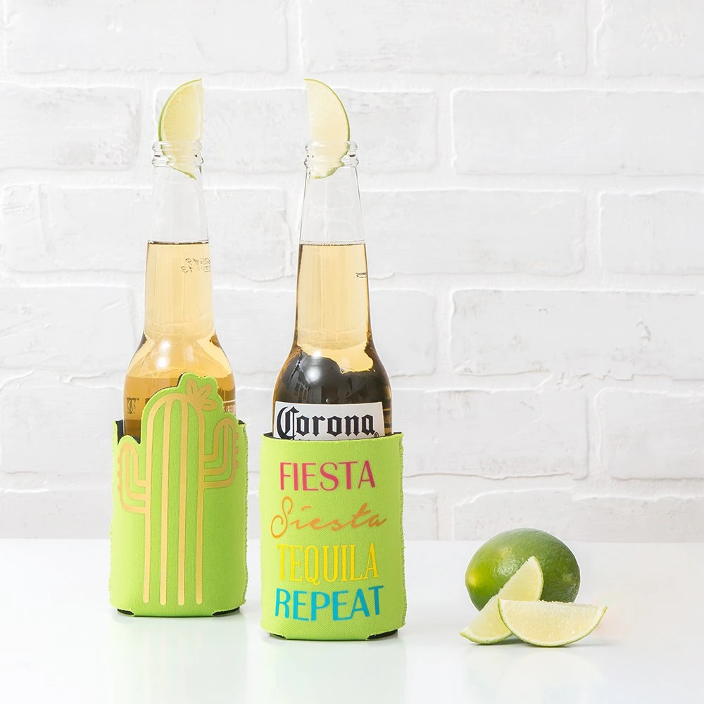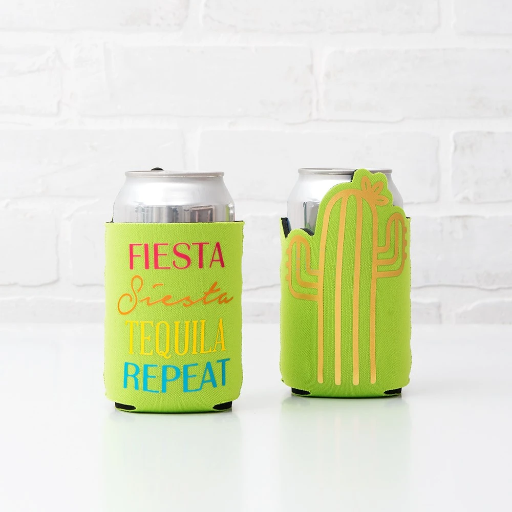 Keep your cerveza cold with a Fiesta Siesta Tequila Repeat Can Coozie. This can cooler is lime green with a gold cactus on one side and a headline that reads “Fiesta Siesta Tequila Repeat” on the other side. Use this drink holder to ensure your beer or soda cans and bottles stay cool during your final fiesta bachelorette party. Give this coozie to your family or friends as a fun party favor at a fiesta birthday party or Cinco de Mayo celebration.