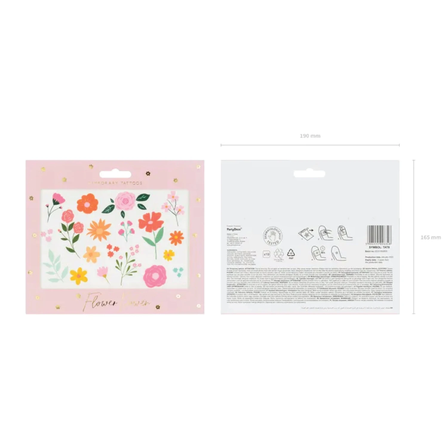 Add a blooming twist to your party favors with these fabulous Floral Temporary Tattoos. This pack of tattoos features greenery and pink, red, and orange flowers with intricate designs. These tattoos are easy to apply and remove, making them perfect for all ages. Choose your favorite design, use it with a damp cloth, and revel in the elegance of these temporary masterpieces. Include these tattoos in party favor bags for birthdays, concerts, showers, or as a fun activity with friends, celebrating moments that bloom forever in their hearts.
