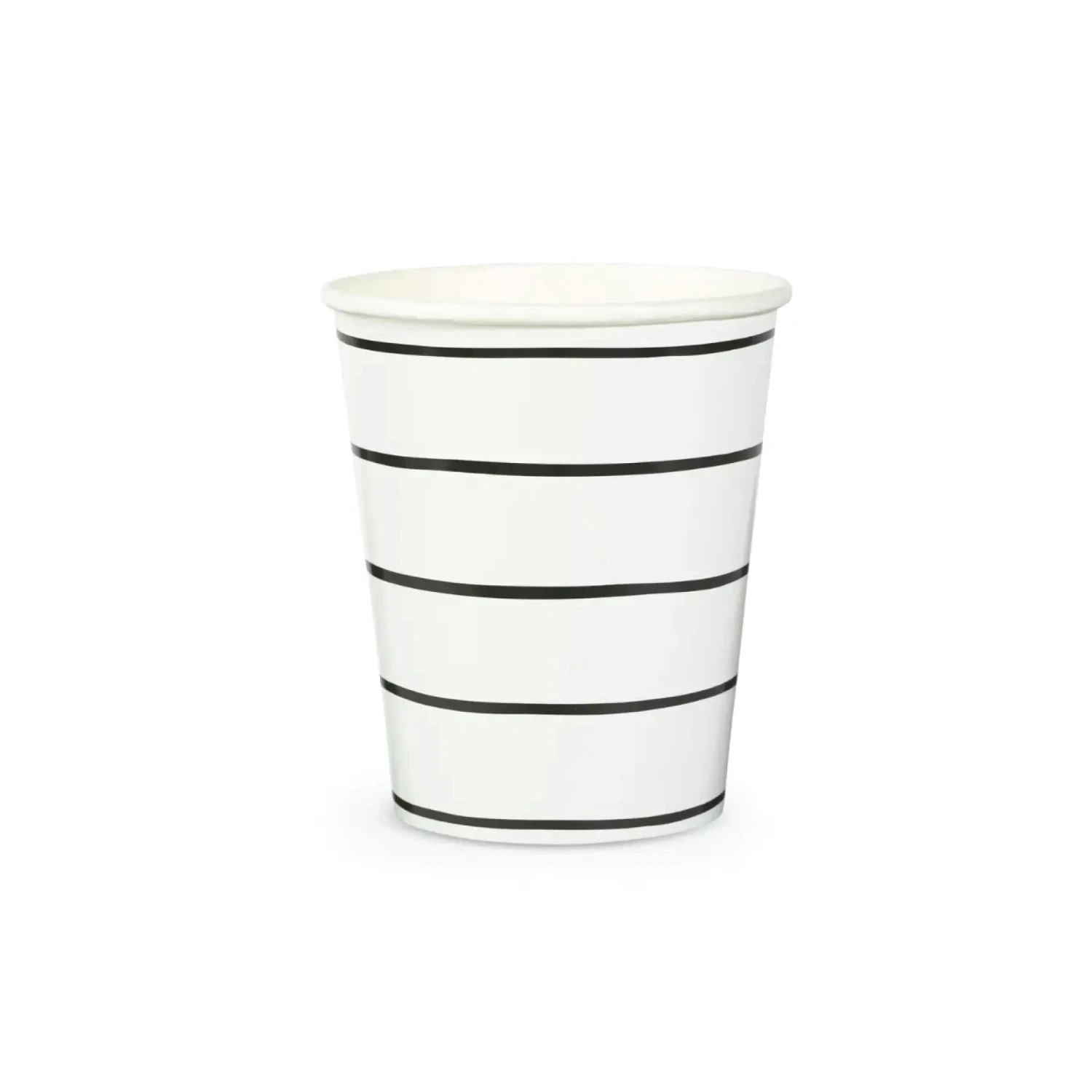 Introducing stylish Frenchie Black Striped Cups that will add a touch of sophistication to any party or event. Made with high-quality materials and inspired by the iconic French Breton stripes providing a chic and modern look. Perfect for serving any beverage and impressing your guests.Let them stand alone or mix and match with another pattern to create your own look!