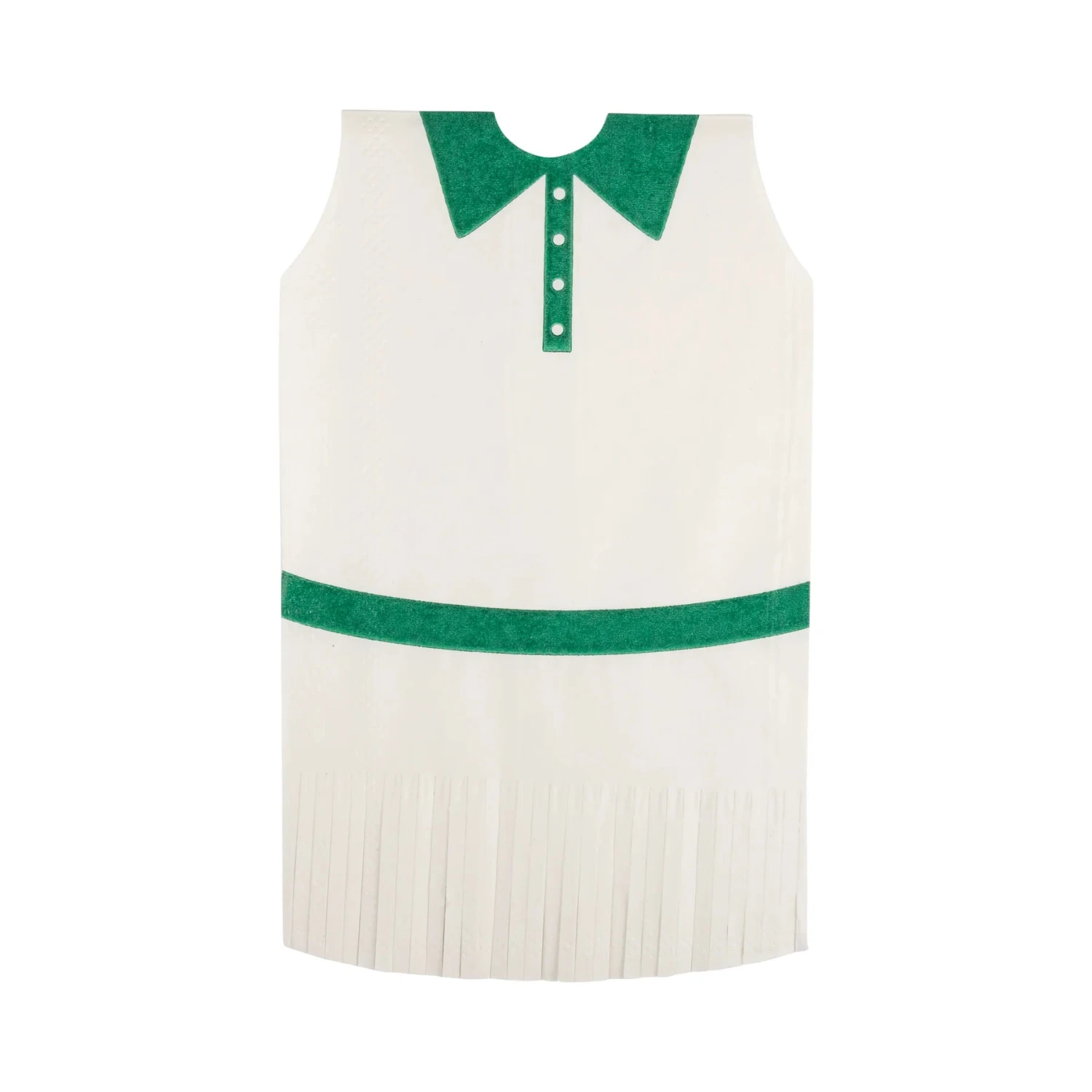 Serve up style and functionality on the court with this Tennis Dress Fringed Napkin Set! Each napkin is shaped like a tennis dress, featuring two eye-catching designs: one with a pink and white argyle pattern and another in a crisp white with green details. Both designs include playful fringe skirt detailing, making them as charming as they are practical. Not just for looks, these tennis napkins are perfect for limiting spills and keeping your party court clean. Perfect for tennis party birthdays, showers, or gatherings, these napkins will surely be a smash hit!