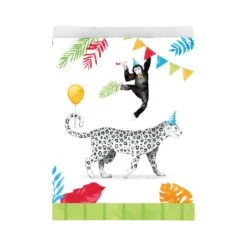 Your guests will go wild when you send them home with treats in these cute Get Wild Safari Treat Bags! These paper favor bags in red, yellow, green, and blue feature different animals on each including a leopard, a zebra, a monkey, and an elephant. Perfect for guests to take home sweet treats or small party favors at your safari birthday or baby shower.