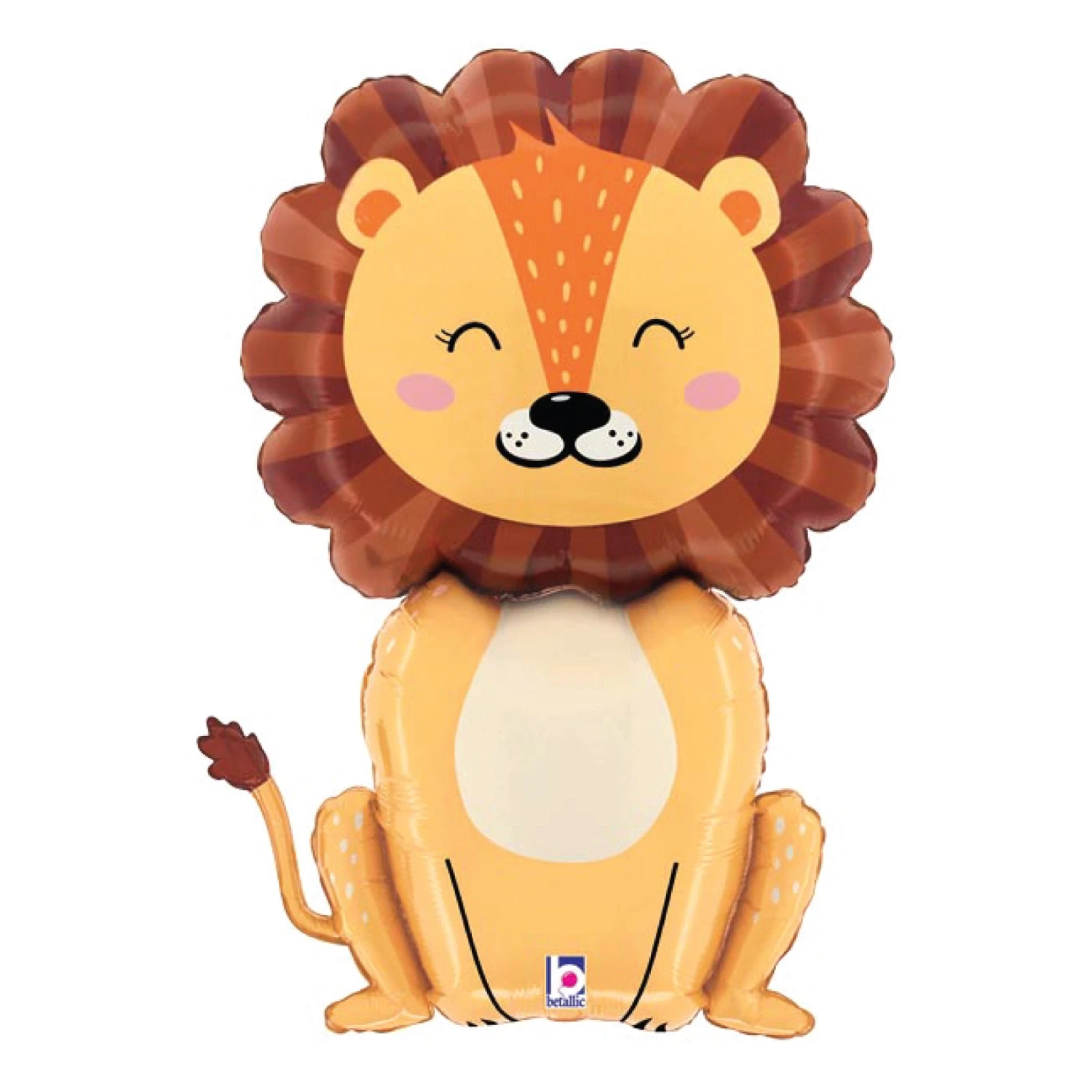 Your little creature will roar excitedly when you decorate with this Giant Jungle Lion Balloon! This foil balloon is shaped like a smiling sitting lion and features a brown mane, rosy cheeks, and a tail. Fill this balloon with air to add it to a safari balloon garland, or inflate it with helium to include it in a balloon bouquet for a unique balloon centerpiece or photo backdrop! Everyone at your jungle baby shower or safari birthday party will enjoy having this lion king watch over their party.