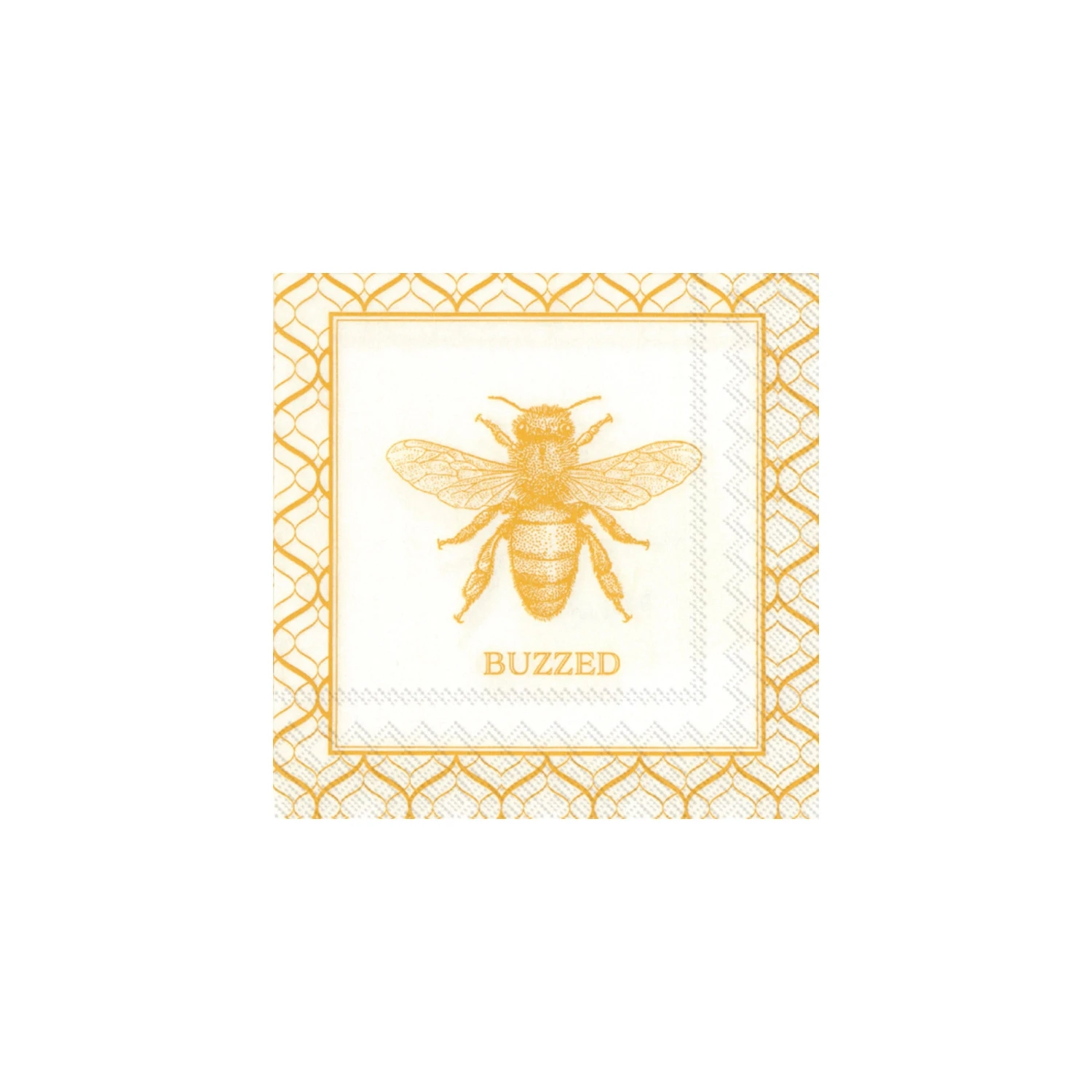 Your guests will be buzzing with excitement at your bee bridal shower with these Gold Buzzed Bee Dessert Napkins on the table. These small paper napkins feature a metallic gold bee and the phrase “buzzed” in the center on a white background with a gold honeycomb design around the edge. Made of 3-ply paper, these disposable napkins are strong enough to clean up messes but can also be thrown away for easy cleanup. Leave a stack of these elegant cocktail napkins by the bar at your “What Will It Bee?” gender reveal party or bumble bee baby shower.