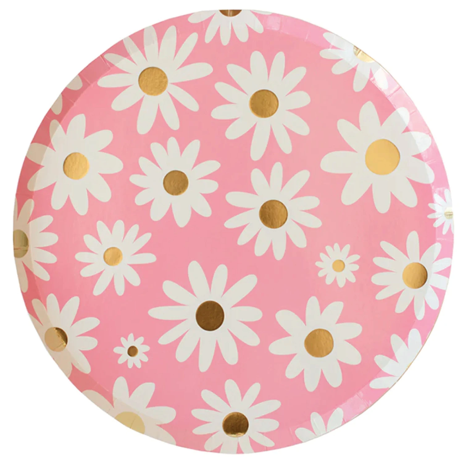 Let your guests refuel after boogieing down at your retro birthday party with food served on these Groovy Pink Daisy Dinner Plates! The large round paper plates feature white daisy designs with gold foil details on a pink background. Set a stack of these paper plates down at each place setting to keep the good vibes. Pair these flower power plates with other daisy party decorations at your 60s party, one groovy baby’s first birthday, or a daisy baby shower.
