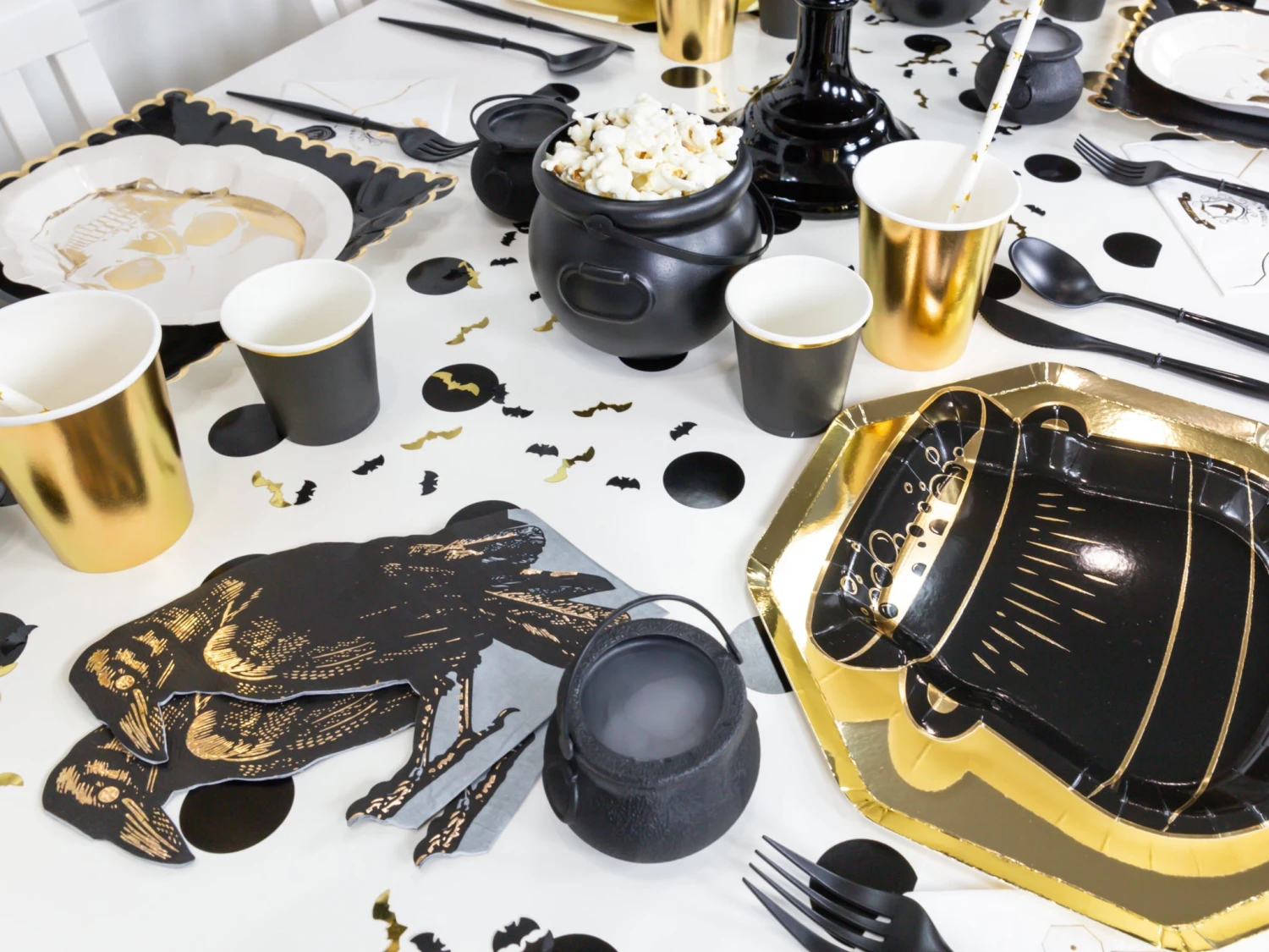 Witches and wizards can keep their hands clean using these Halloween Raven Lunch Napkins after they claw through their meal. These paper napkins are shaped like a black raven eyeing his next meal. The gold foil detail adds an elegant touch and pairs well with our Spellbound collection. Use these Halloween napkins to make spills disappear quickly—no magic required—at a witch birthday party or a kid’s Halloween party. Grab some raven napkins for a magical addition to your table setting.