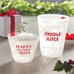 Raise a glass to the merriest time of the year with Happy Alcohol-idays Plastic Frosted Wine Cups! These frosted clear cups feature a bold red “Happy Alcohol-idays” headline and are perfect for spreading holiday cheer. Whether you’re sipping on eggnog, festive cocktails, or any holiday drinks, these cups add a touch of merriment to every sip. Plus, with the convenience of hand-washing and reusability, these shatterproof cups are set to become a beloved tradition at your Christmas parties, holiday gatherings, or any occasion where spirits are high. So, toast to the happiest of holidays with the perfect Christmas cup in hand!