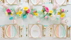 Guests will be egg-static to see these Happy Easter Egg Napkins set on your Easter party table. Each egg-shaped paper napkin features a “Happy Easter” pastel headline on a cream background. Keep a stack of these pastel Easter napkins on the dessert table or set one at each place setting. Bright and playful, these napkins are perfect for adding to your Easter tablescape or child’s Easter birthday party.Â