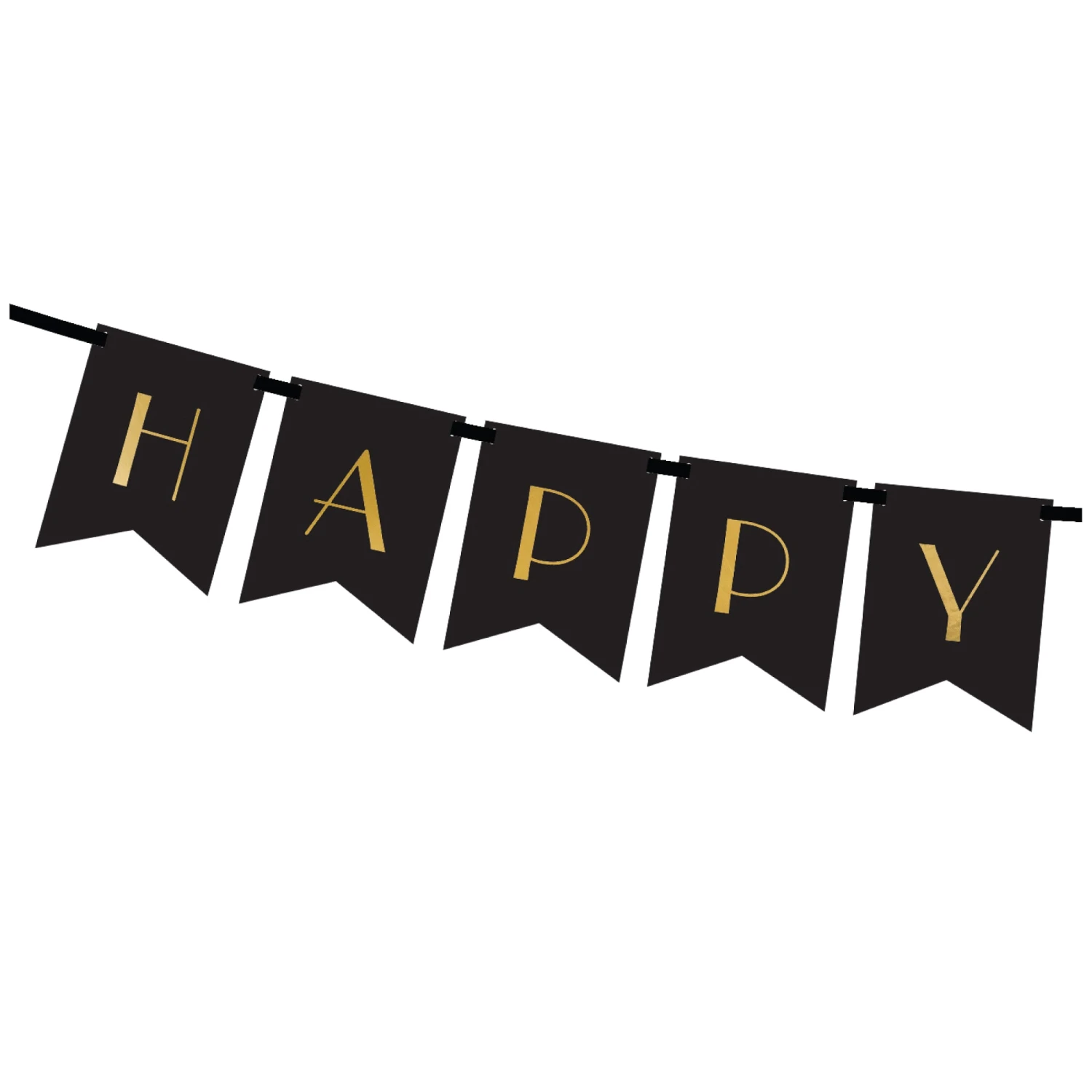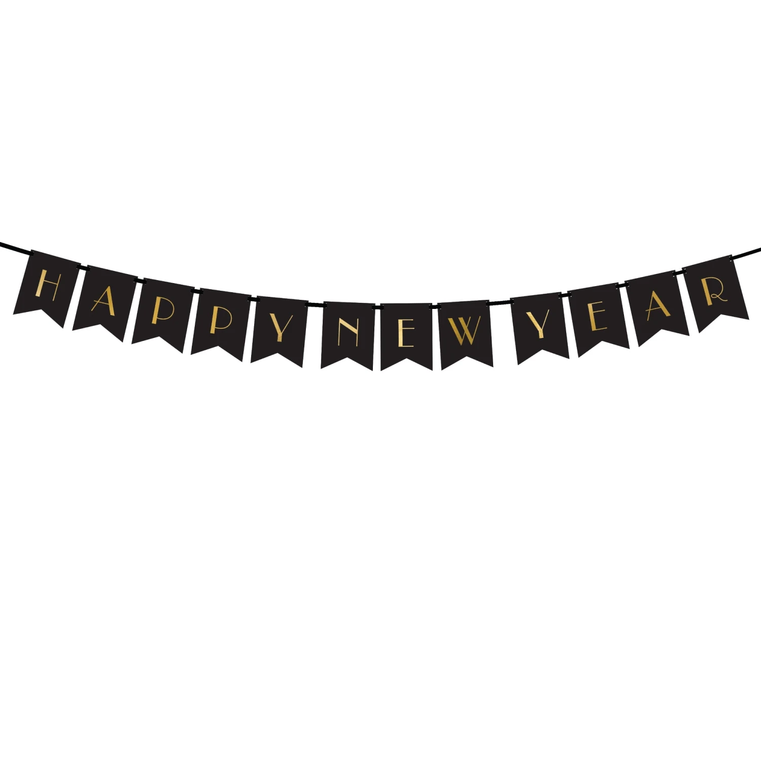 Ring in the new year with this Happy New Year Banner. This elegant banner is made from black cardstock with gold metallic foil lettering. Hang the banner to create an elegant backdrop for your New Year’s Eve photos.