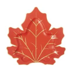 Bring the fall leaves indoors with these Harvest Maple Leaf Shaped Plates out on the table. These paper plates feature a beautiful maple leaf shape with shiny gold foil detail. Place these Thanksgiving plates on your dessert table so guests can help themselves to your fall celebrations. Serve pies, cakes, and all the best foods on these plates at your Thanksgiving celebration.Â