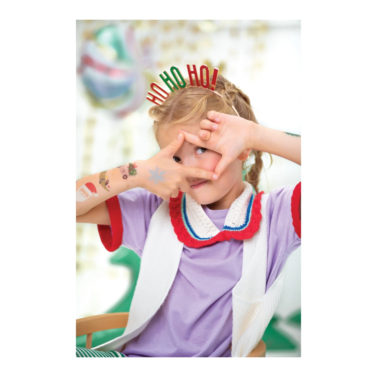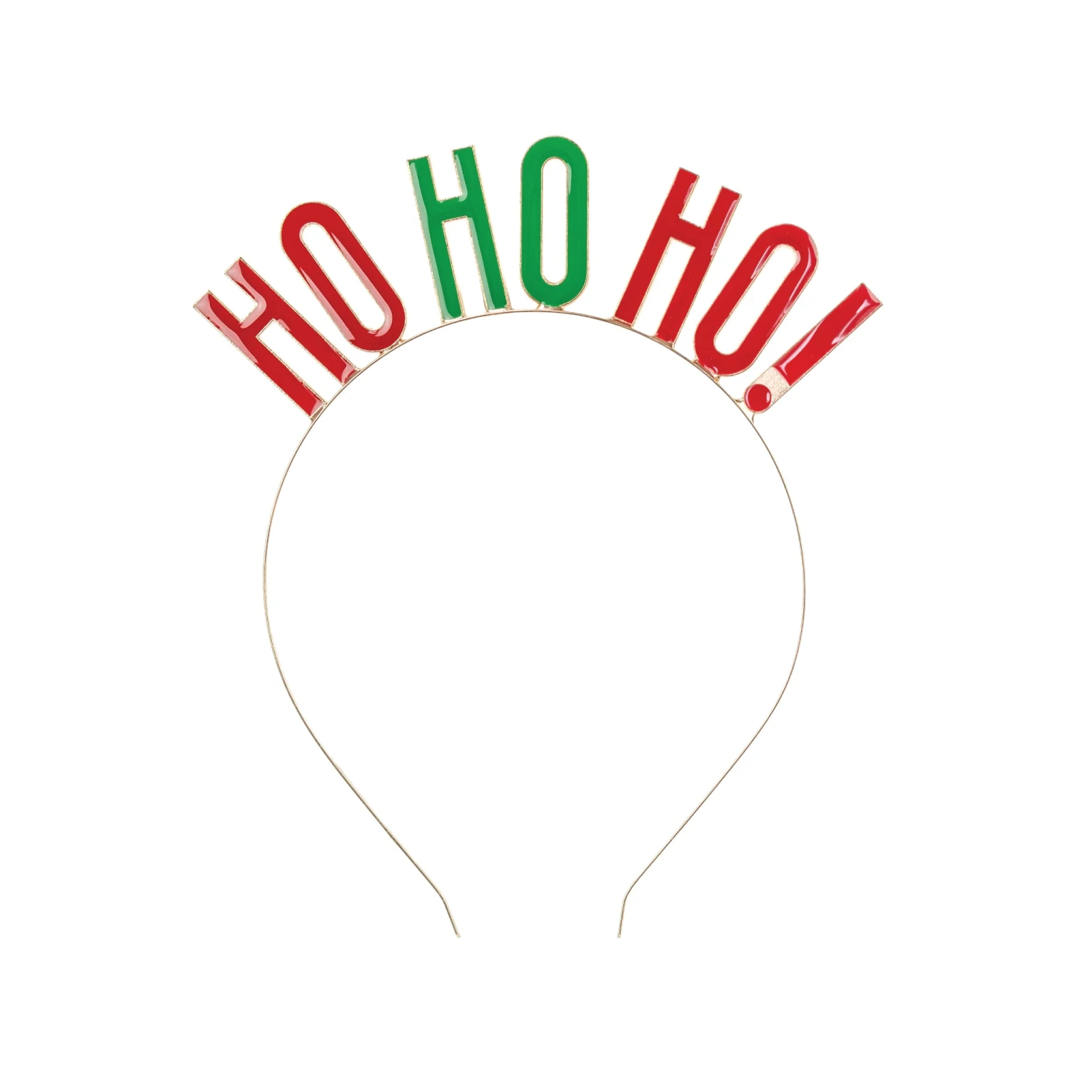 Dress up for your Christmas party with this HO HO HO Metal Headband! This gold headband features the headline “HO HO HO” in red and green letters. Add this hair accessory to your holiday attire or wear it as a photo prop for a Christmas photo booth. All your friends at your holiday party will love your Ho Ho Ho headband.Â