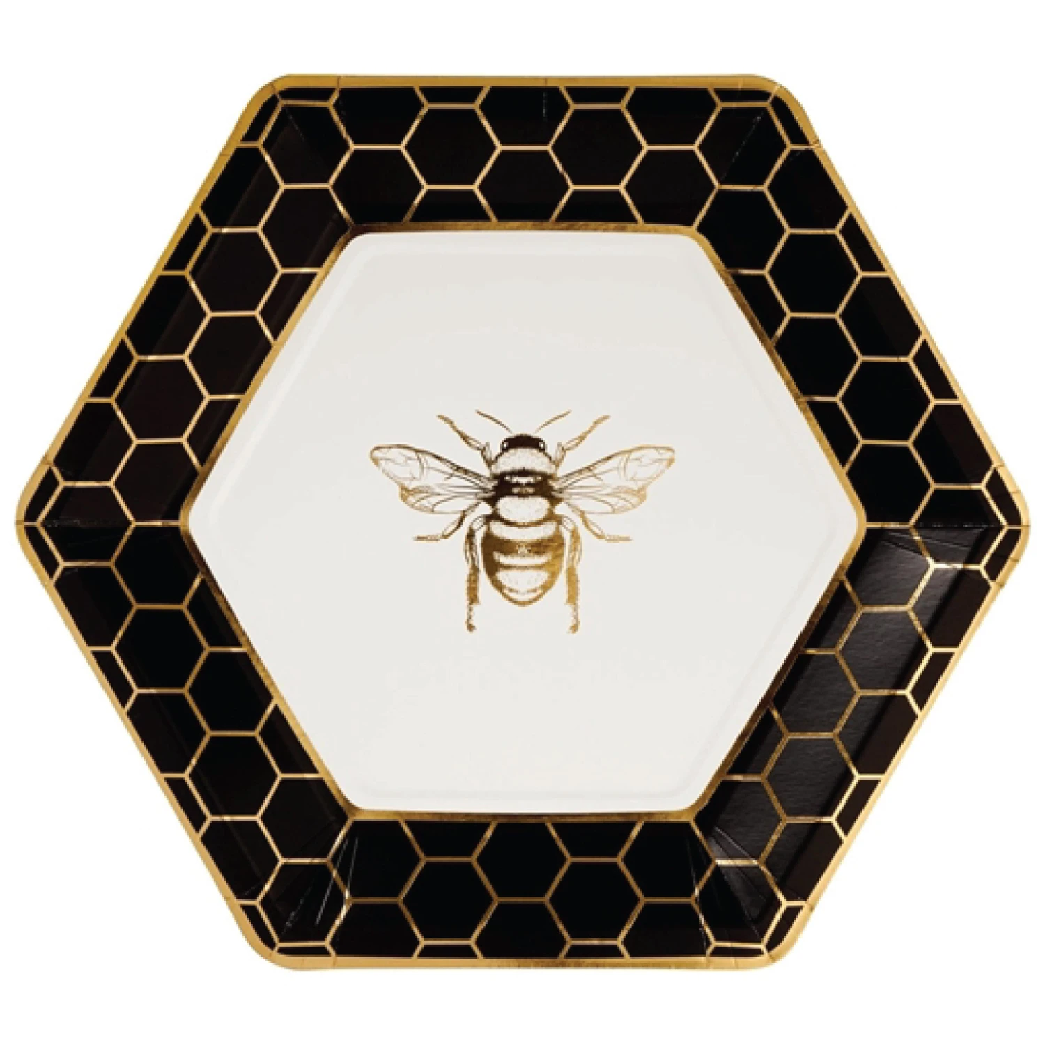 Add honey-sweet fun to your party with these Honeycomb Bee Hexagonal Dinner Plates! These hexagonal paper plates feature a white center with a gold foil bee illustration and an elegant honeycomb border. Whether hosting a bee baby shower, a honey-sweet birthday celebration, or a bee bridal shower, these plates will make your event truly buzzworthy. And when it’s time to dig into delicious dishes, these plates are up to the task, whether you’re serving a buzzing buffet or a honey-inspired feast. So, why settle for ordinary plates when you can create a hive of happiness with these bee plates?