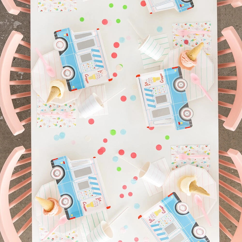 These Ice Cream Truck Lunch Plates will be the cherry on top of your ice cream party! These paper plates resemble charming ice cream trucks with holographic silver foil for the wheels and windows, delivering scoops of fun to your celebration. Set a stack of these plates on the table so guests can load them up with scoops of ice cream, irresistible toppings, and delicious desserts. Use these plates to save time on cleanup, so you can enjoy the sweet party without the hassle of washing dishes afterward. So, whether you’re celebrating a child’s ice cream birthday or an ice cream extravaganza, these ice cream plates will bring a scoop-load of delicious memories!