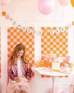 Cast a spooktacular spell on your Halloween party with these In My Spooky Era Lunch Plates! These square paper plates feature a cream background adorned with an orange and pink “in my spooky era” headline, accented by sparkling gold foil stars and a crescent moon. Perfect for serving everything from spooky snacks to wicked treats, making cleanup a breeze. Ideal for a groovy Halloween celebration with your ghoul friends and fellow Swift fans, these Halloween plates will turn every bite into a bewitching delight!