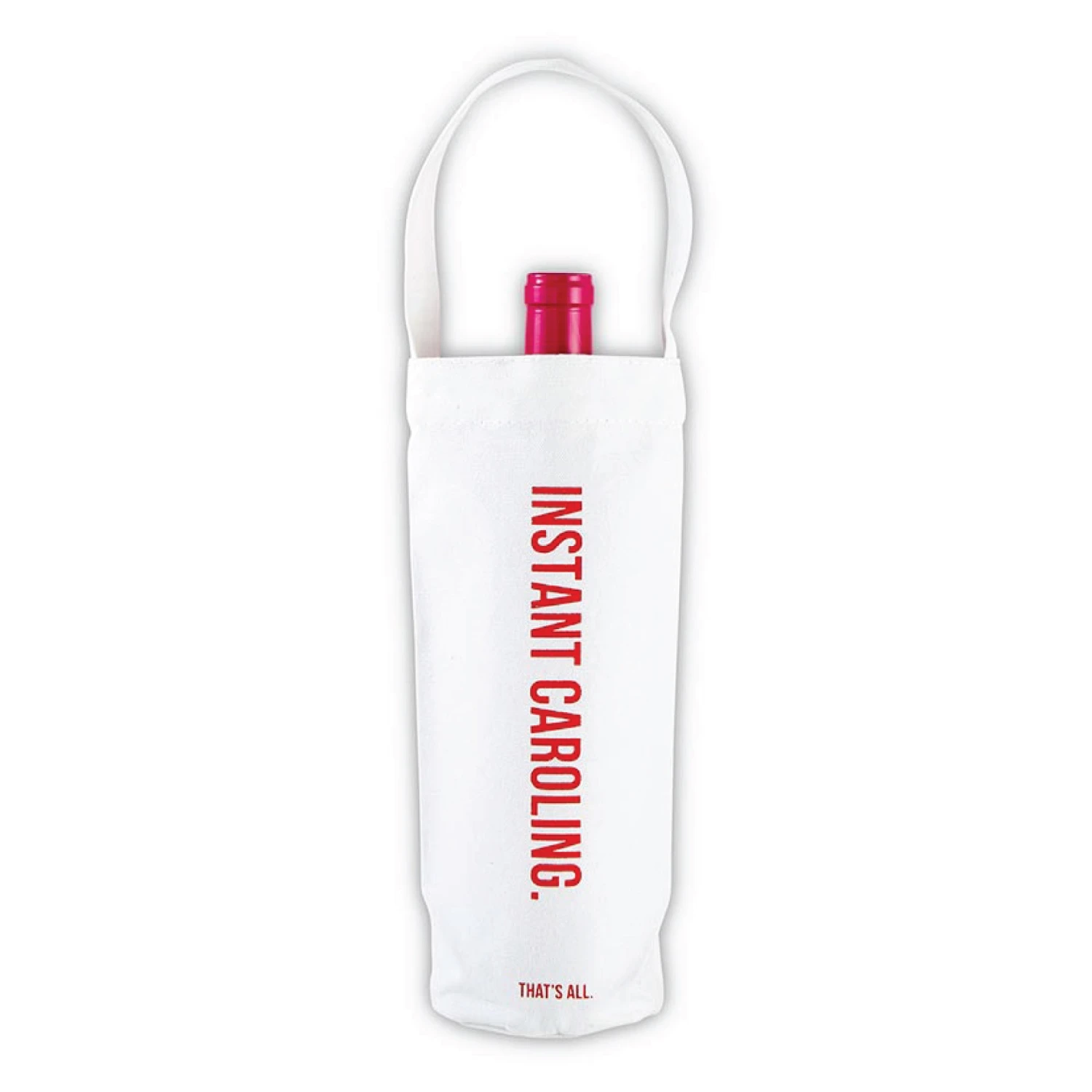 Let the voices be heard when you give your friends a bottle of bubbly in this Instant Caroling Canvas Wine Bottle Bag. This canvas wine bag features the headline “Instant Caroling” in red on a white background with a handle for easy carrying. Give an intoxicating gift for the hostess, a friend’s birthday, or to say thank you. Put a bottle of bubbly or wine in this gift bag for a quick and easy gift that’s sure to please.