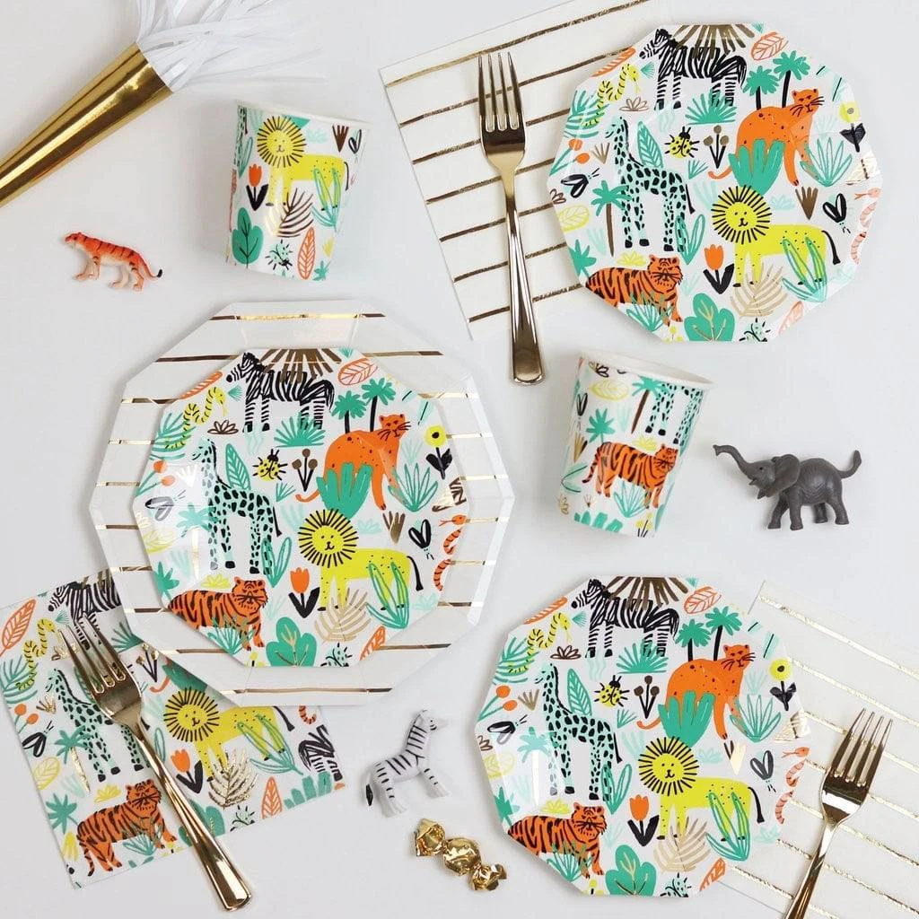 These safari animal party cups feature fun colors, safari animals, and gold foil-pressed elements. Grab the matching plates and napkins and you’ll have yourself a safari-themed party!