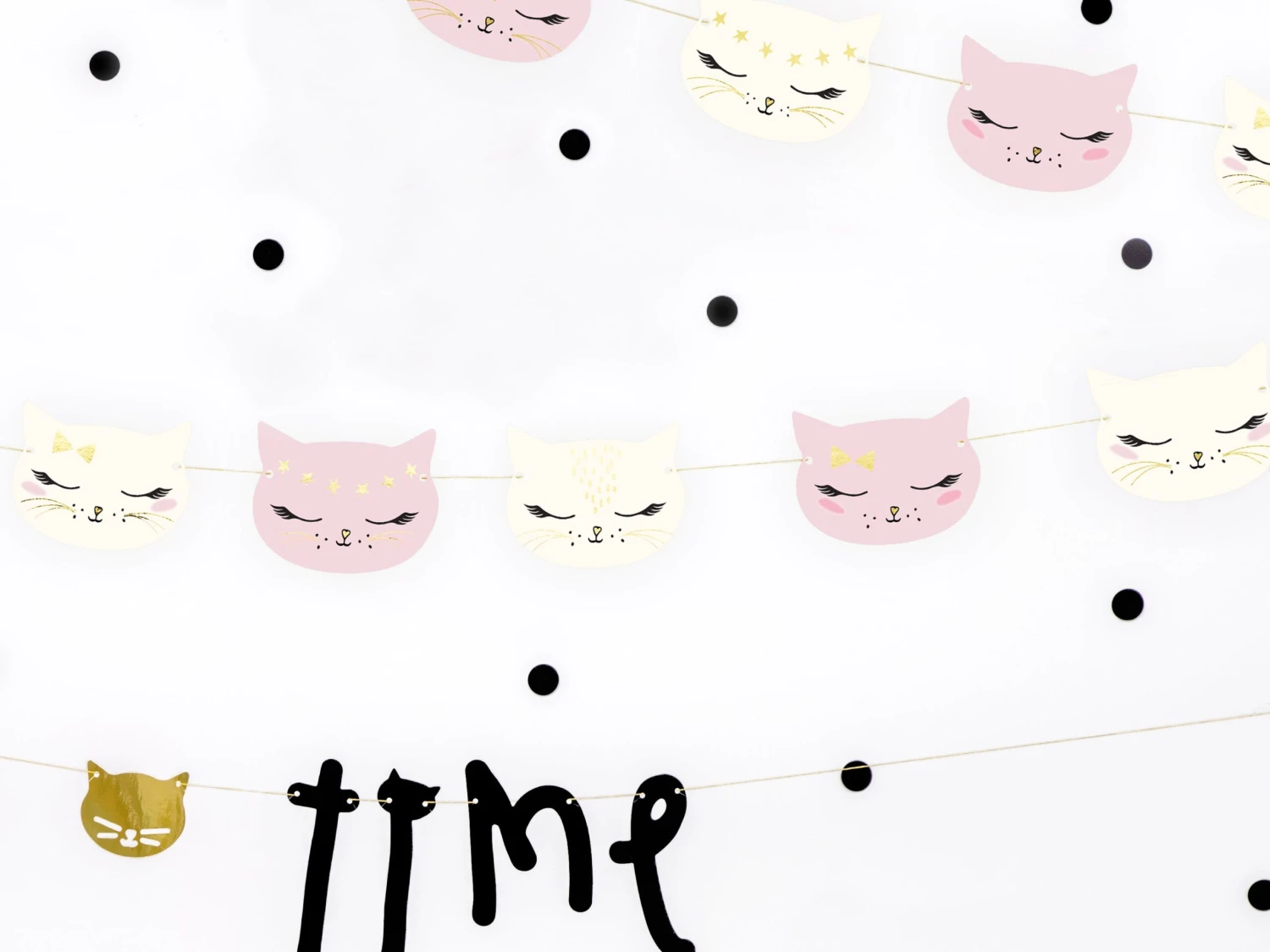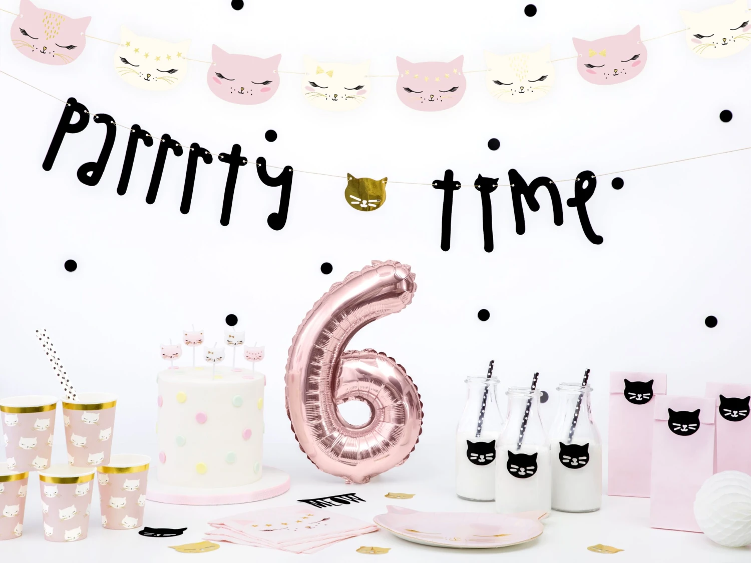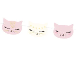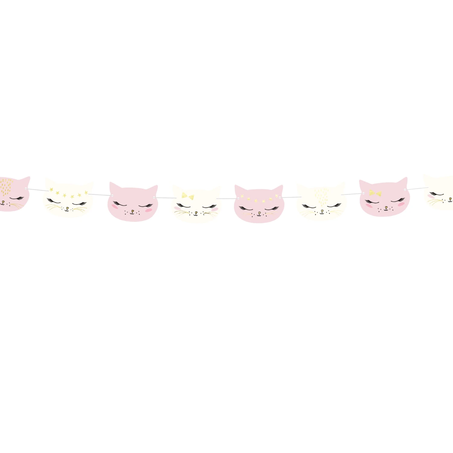 Celebrate your little kitten’s big day with this Kitty Cat Party Banner. This cardstock banner features an assortment of pink and white cat-shaped pennants with gold accents. String with the gold twine to create the purr-fect backdrop for your kitty cat birthday party or little kitten baby shower.
